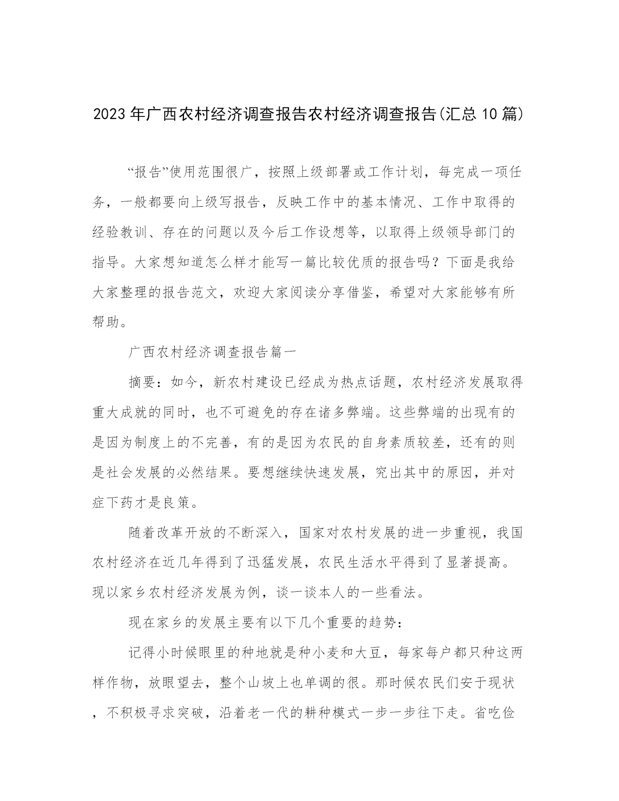 2023年广西农村经济调查报告农村经济调查报告(汇总10篇).docx