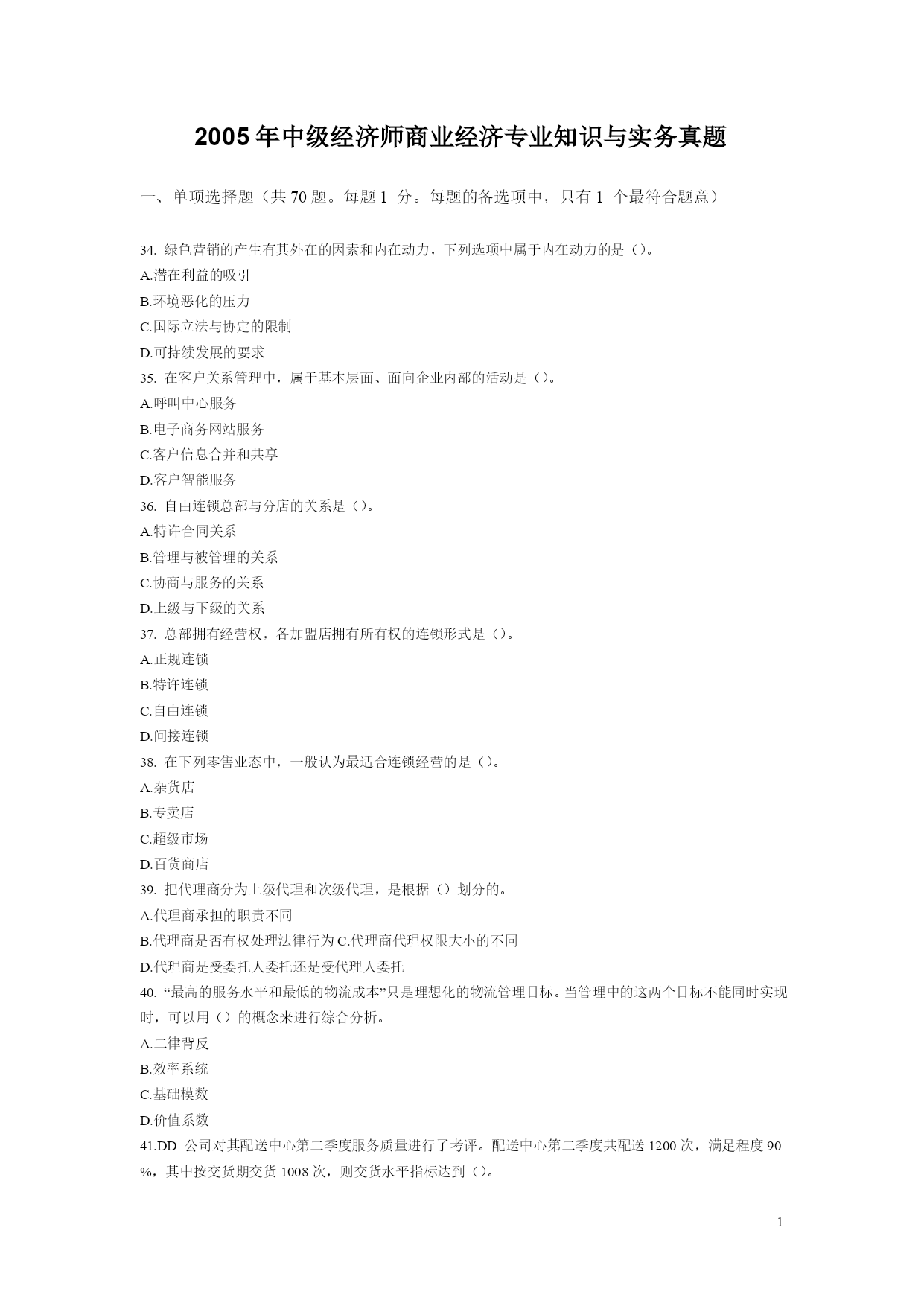 2005年中级经济师商业经济专业知识与实务真题1.doc
