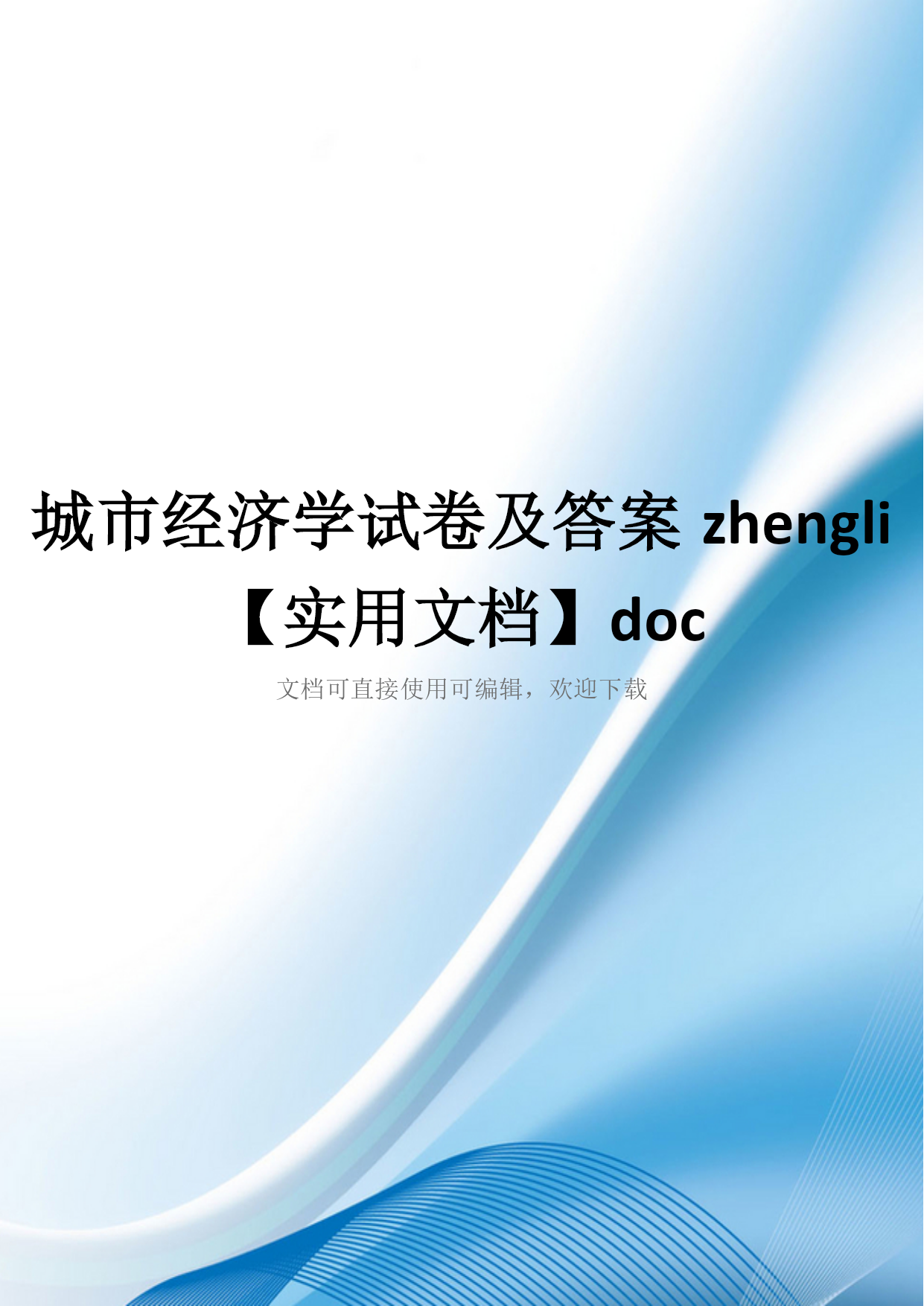 城市经济学试卷及答案zhengli【实用文档】doc文档可直接使用可编辑,欢迎下载《城市经济学》课堂测验班级姓名学号方向一、名词解释(3分×5=15分,任选5题)1。比较优势原理;2.配第—克拉克定理;3.城市经济增长;4.城市化经济5.首位分布;6.生产者剩余;7.集聚经济;8.规模经济1。比较优势原理:虽然国家可能在两种商品的生产上都处于劣势地位,但两者的优劣程度一般都不同,相比之下,总有一种商品的成本劣势要小一些,具有相对优势.国家或地区间利用这种相对优势进行专业化生产,之后进行贸易,那么双方都能从
