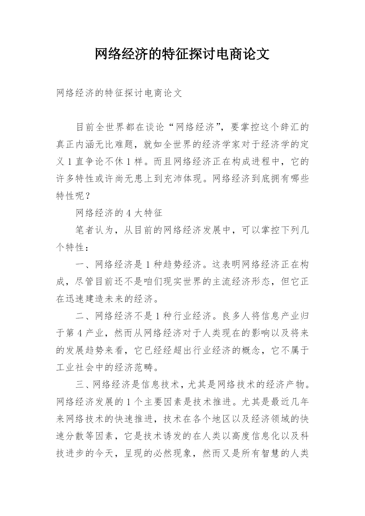 网络经济的特征探讨电商论文网络经济的特征探讨电商论文目前全世界都在谈论“网络经济”,要掌控这个辞汇的真正内涵无比难题,就如全世界的经济学家对于经济学的定义1直争论不休1样。而且网络经济正在构成进程中,它的许多特性或许尚无患上到充沛体现。网络经济到底拥有哪些特性呢?网络经济的4大特征笔者认为,从目前的网络经济发展中,可以掌控下列几个特性:一、网络经济是1种趋势经济。这表明网络经济正在构成,尽管目前还不是咱们现实世界的主流经济形态,但它正在迅速建造未来的经济。二、网络经济不是1种行业经济。良多人将信息产业归于
