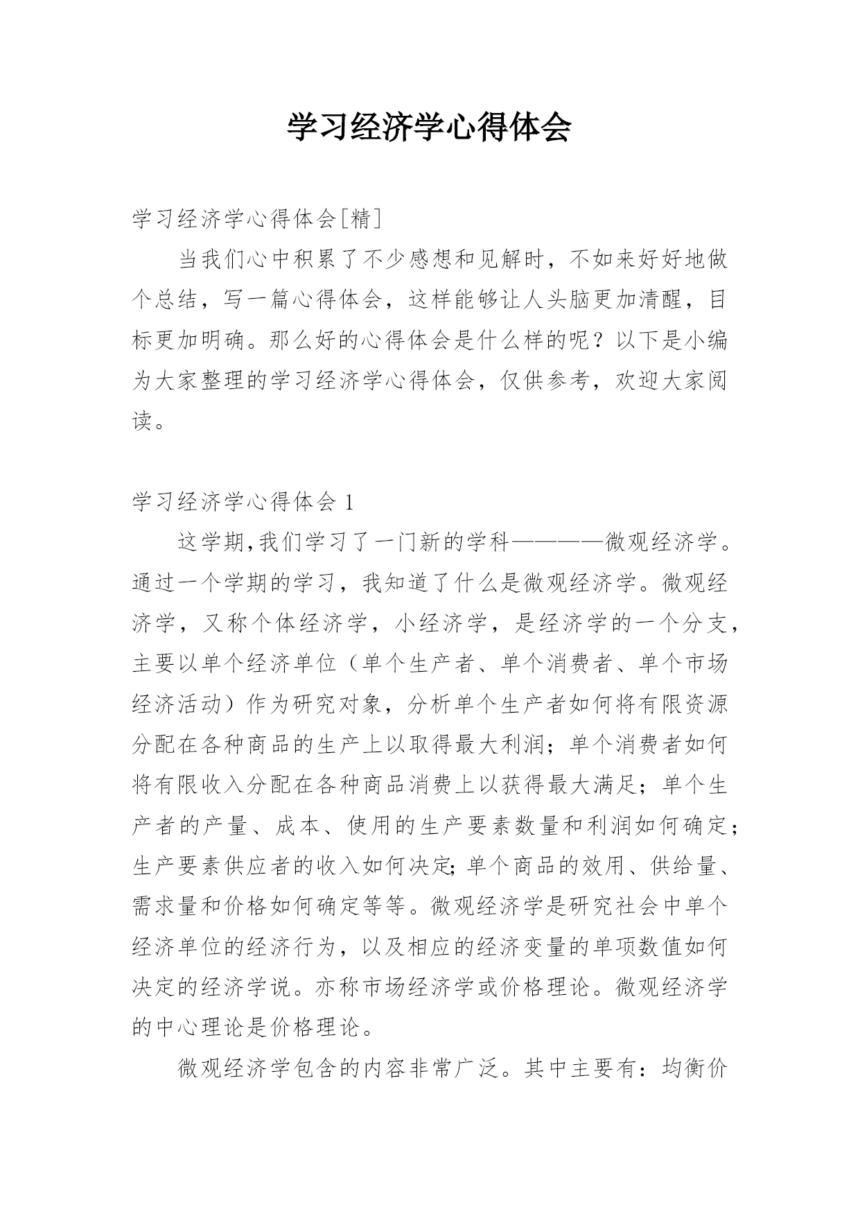 学习经济学心得体会学习经济学心得体会[精]当我们心中积累了不少感想和见解时,不如来好好地做个总结,写一篇心得体会,这样能够让人头脑更加清醒,目标更加明确。那么好的心得体会是什么样的呢?以下是小编为大家整理的学习经济学心得体会,仅供参考,欢迎大家阅读。学习经济学心得体会1这学期,我们学习了一门新的学科————微观经济学。通过一个学期的学习,我知道了什么是微观经济学。微观经济学,又称个体经济学,小经济学,是经济学的一个分支,主要以单个经济单位(单个生产者、单个消费者、单个市场经济活动)作为研究对象,分析单个生