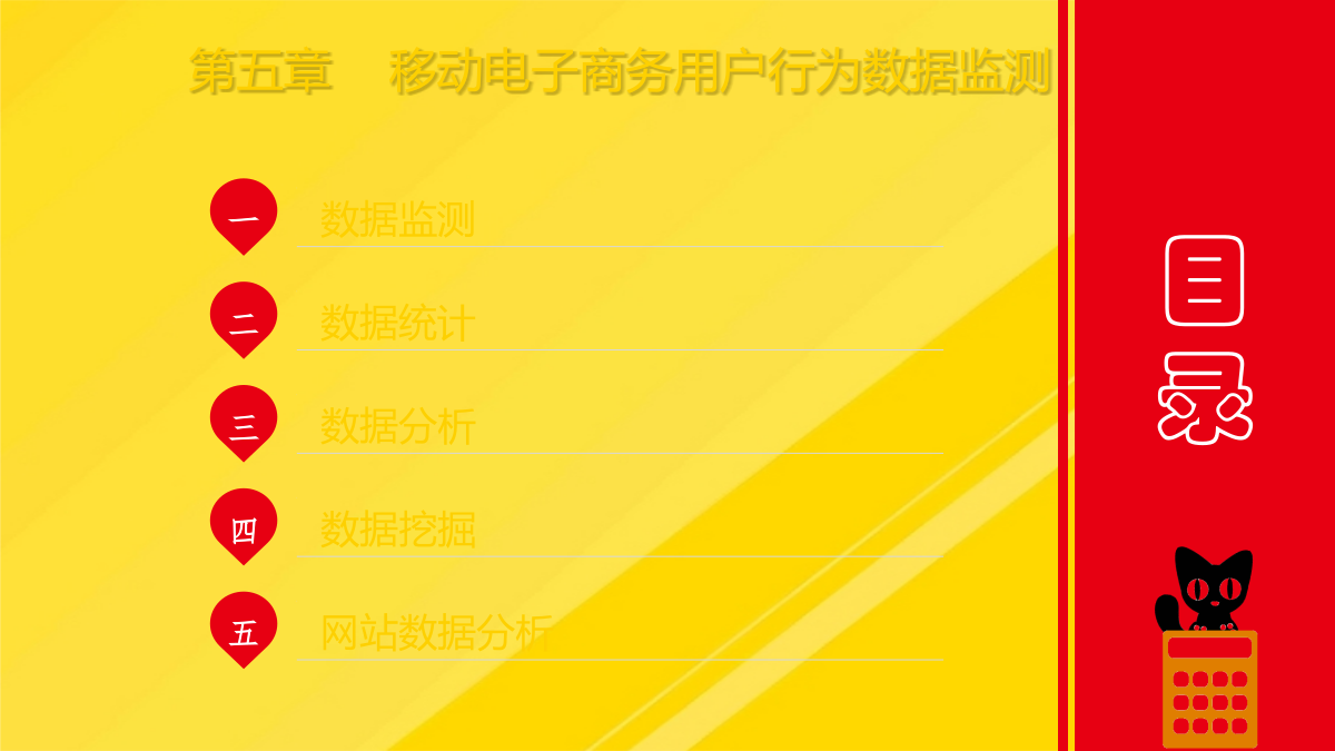 一学习目标及重点、难点数据监测一、首屏时间二、网页访问可用性三、DNS时间四、建立连接时间网络数据在很大程度上改变了企业的运作和经营模式。三、常用网站数据分析方法在大数据时代,大数据全面、实时、精准地为企业提供了海量的数据集。在移动电子商务这个大背景下,网站分析的商业指标特别指网站搜集访问者资料,并以该数据检测网站的布局是否符合商业目标的过程。1.数据挖掘的发展阶段数据营销(DatabaseMarketingService,DMS)是在IT技术、互联网技术和数据库技术的基础上逐渐发展起来的一种市场营销推广