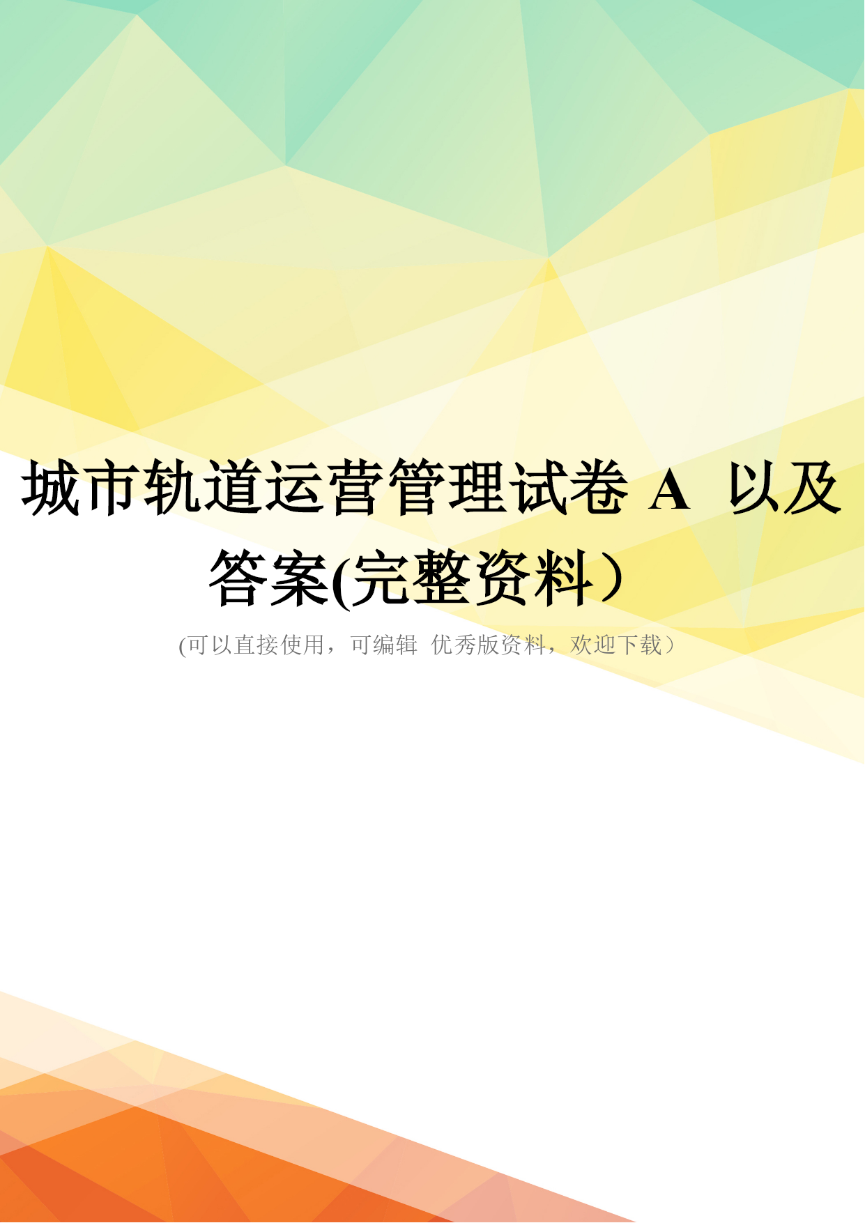 城市轨道运营管理试卷A-以及答案(完整资料).doc