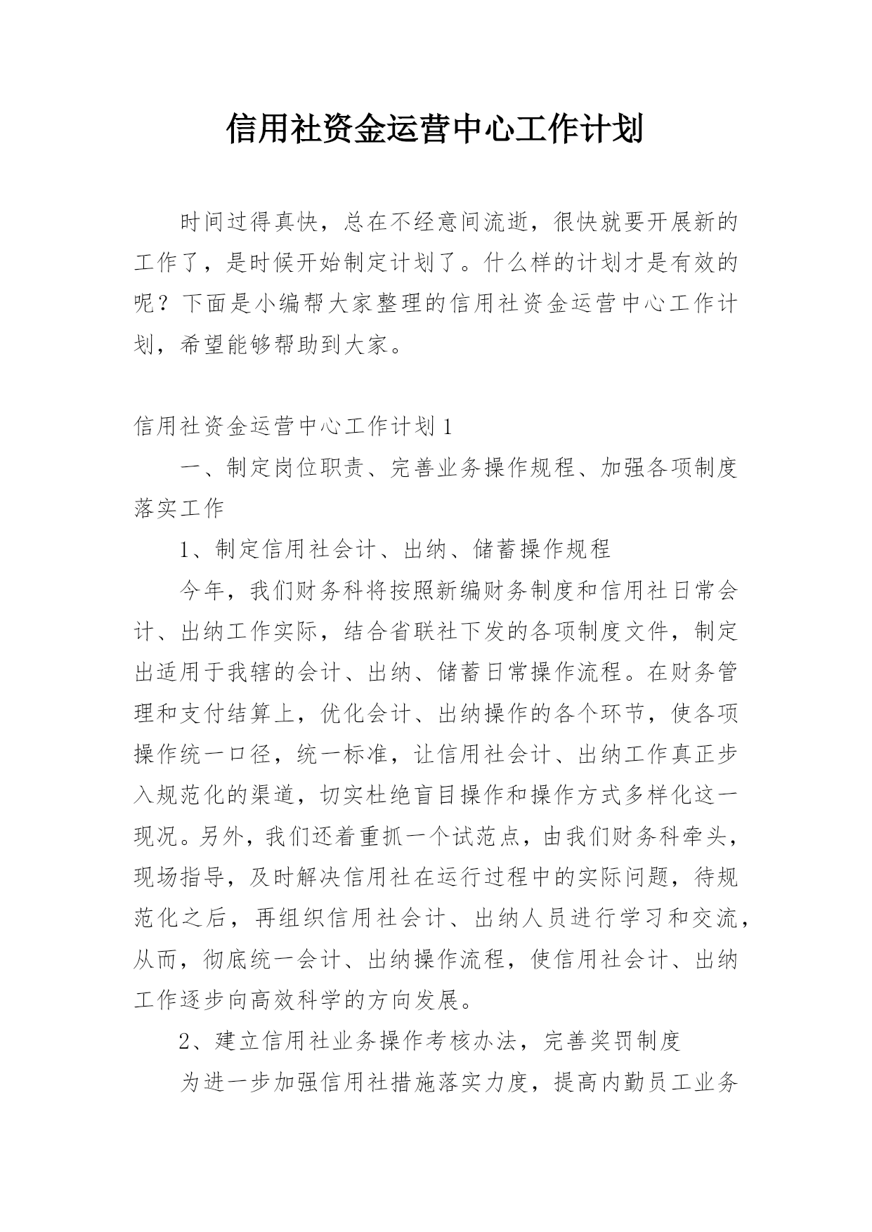信用社资金运营中心工作计划时间过得真快,总在不经意间流逝,很快就要开展新的工作了,是时候开始制定计划了。什么样的计划才是有效的呢?下面是小编帮大家整理的信用社资金运营中心工作计划,希望能够帮助到大家。信用社资金运营中心工作计划1一、制定岗位职责、完善业务操作规程、加强各项制度落实工作1、制定信用社会计、出纳、储蓄操作规程今年,我们财务科将按照新编财务制度和信用社日常会计、出纳工作实际,结合省联社下发的各项制度文件,制定出适用于我辖的会计、出纳、储蓄日常操作流程。在财务管理和支付结算上,优化会计、出纳操作的