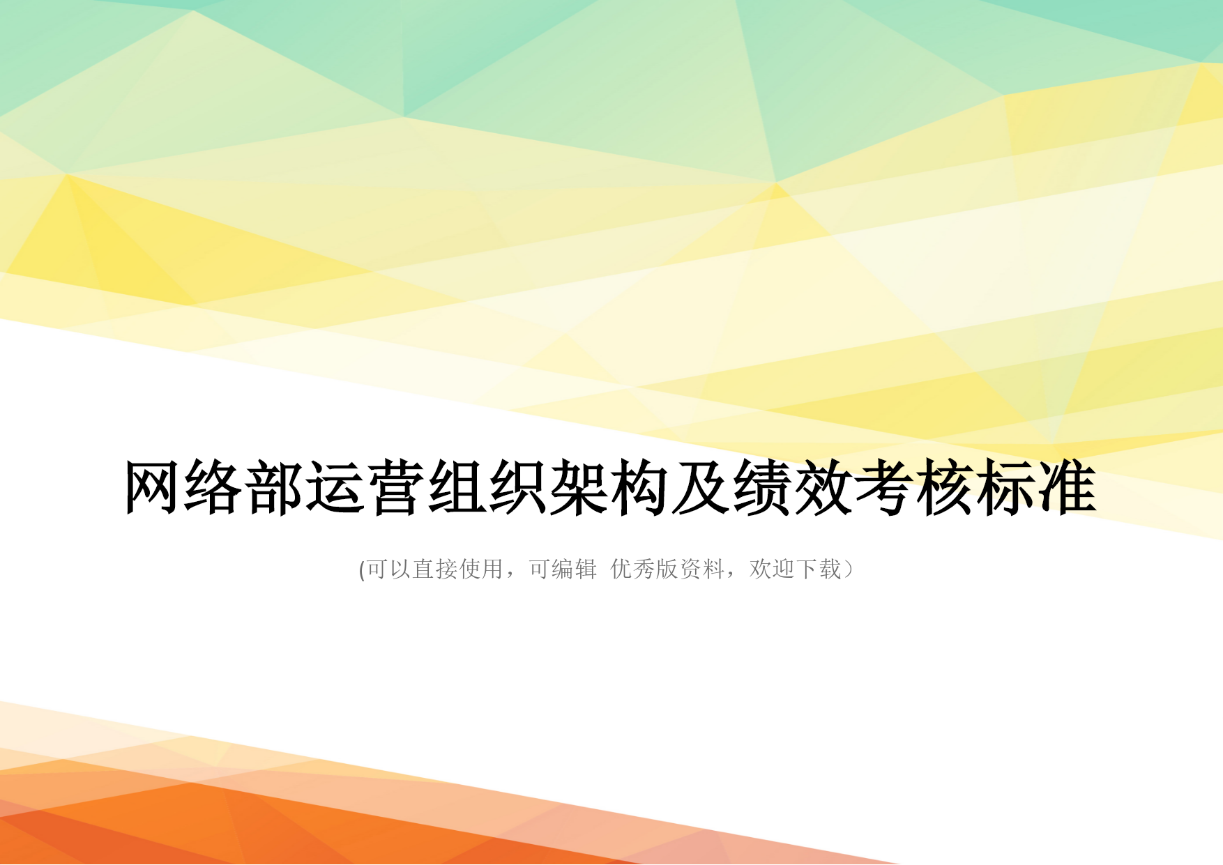 网络部运营组织架构及绩效考核标准(可以直接使用,可编辑优秀版资料,欢迎下载)网络部运营组织架构-———运营经理-张洪组织框架:技术一、开发(程序开发、PHP方向)底薪:5000~7000绩效:评分制岗责:1。参与需求调研、项目可行性分析、技术可行性分析和需求分析;2。熟悉并熟练掌握交付运营部所需开发的线上项目的相关软件技术;3.负责向项目负责人及时反馈开发进度及具体情况,并提出改进建议;4.参与项目开发和维护过程中重大技术问题的解决,参与线上项目首次安装调试、数据割接、用户培训等;5。负责相关技术文档的拟