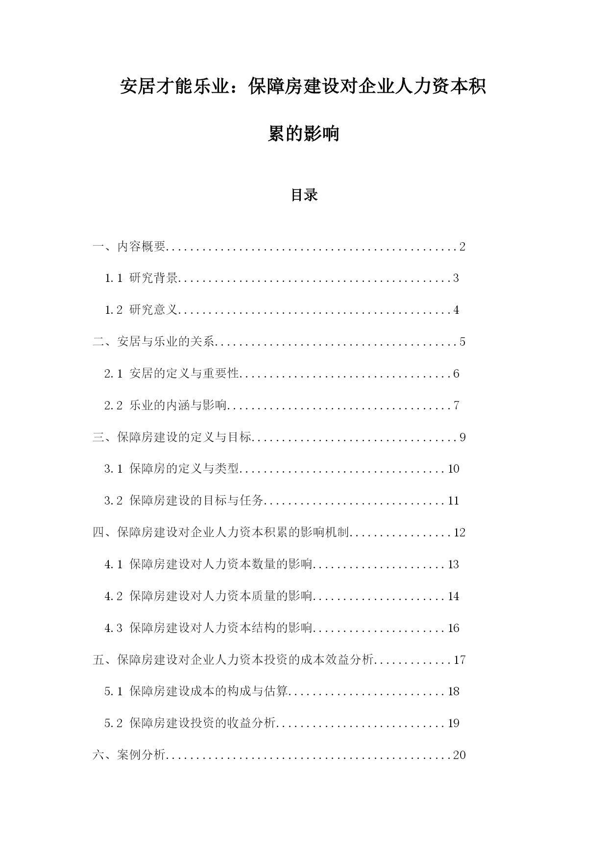安居才能乐业:保障房建设对企业人力资本积累的影响目录一、内容概要................................................21.1研究背景.............................................31.2研究意义.............................................4二、安居与乐业的关系........................................52.1安居的定义与重要性.....
