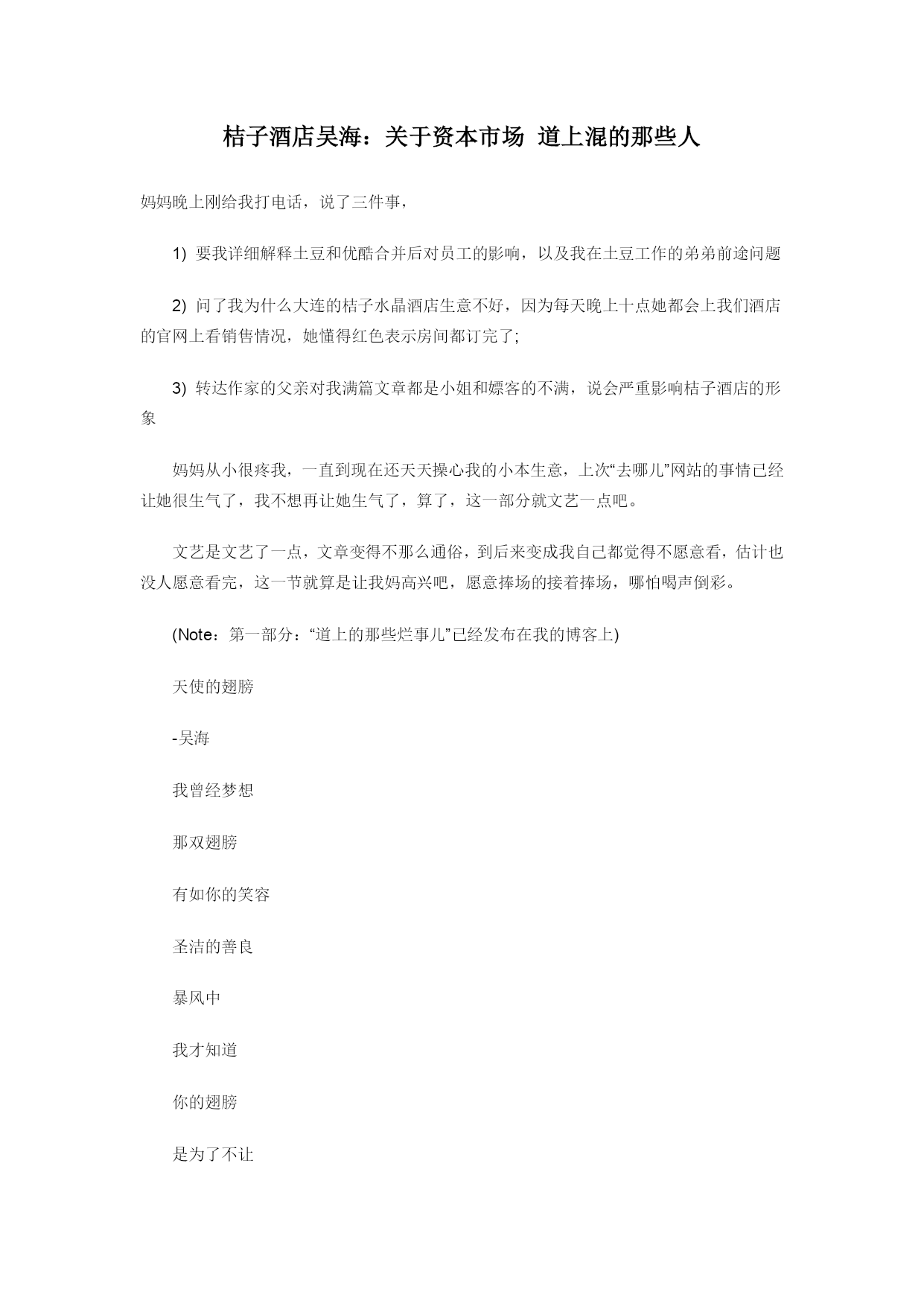桔子酒店吴海:关于资本市场 道上混的那些人.doc