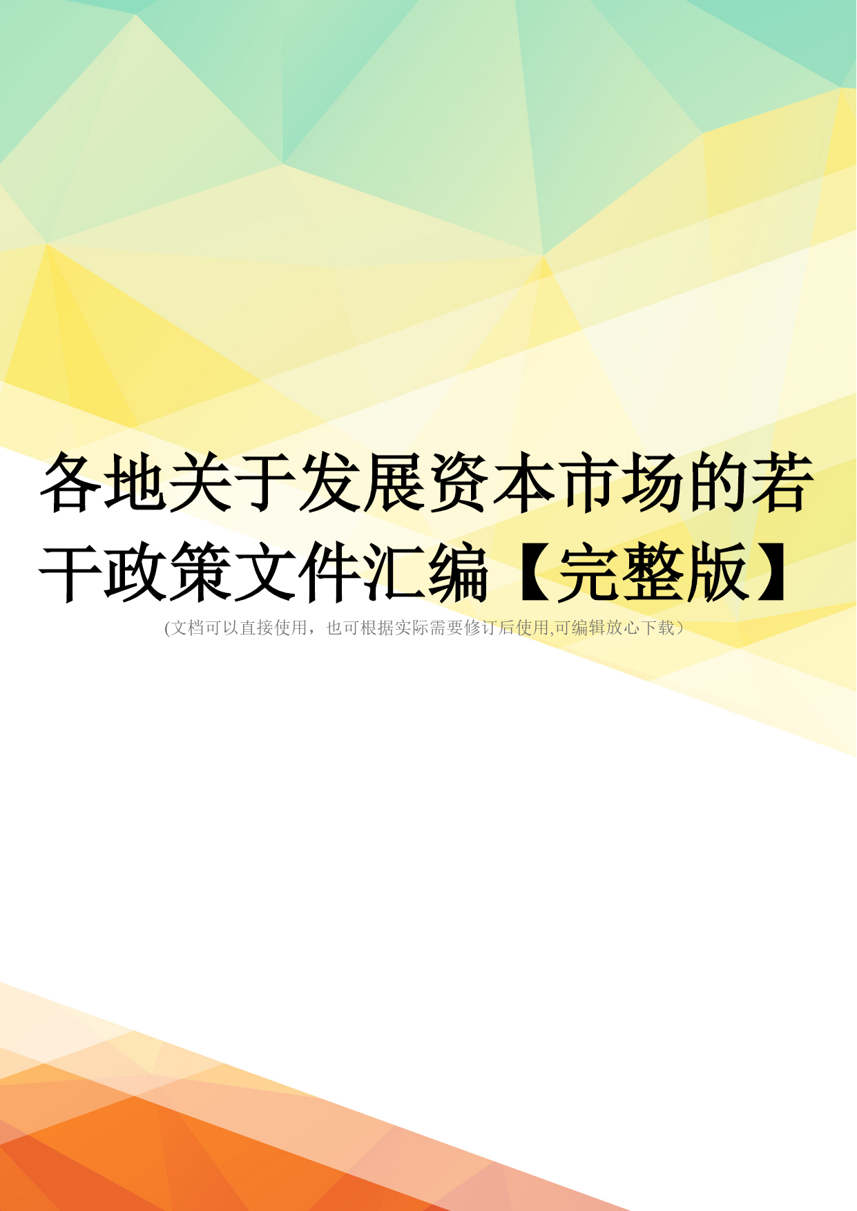 各地关于发展资本市场的若干政策文件汇编【完整版】(文档可以直接使用,也可根据实际需要修订后使用,可编辑放心下载)各地关于开展资本市场的假设干政策文件汇编目录TOC\o"1-1"\h\zHYPERLINK\l"_Toc151958562"广东省政府关于进一步开展利用资本市场的通知(2003-6-5)PAGEREF_Toc151958562\h3HYPERLINK\l"_Toc151958563"长沙市政府关于开展资本市场的假设干意见(2004-4-26)PAGEREF_Toc15195