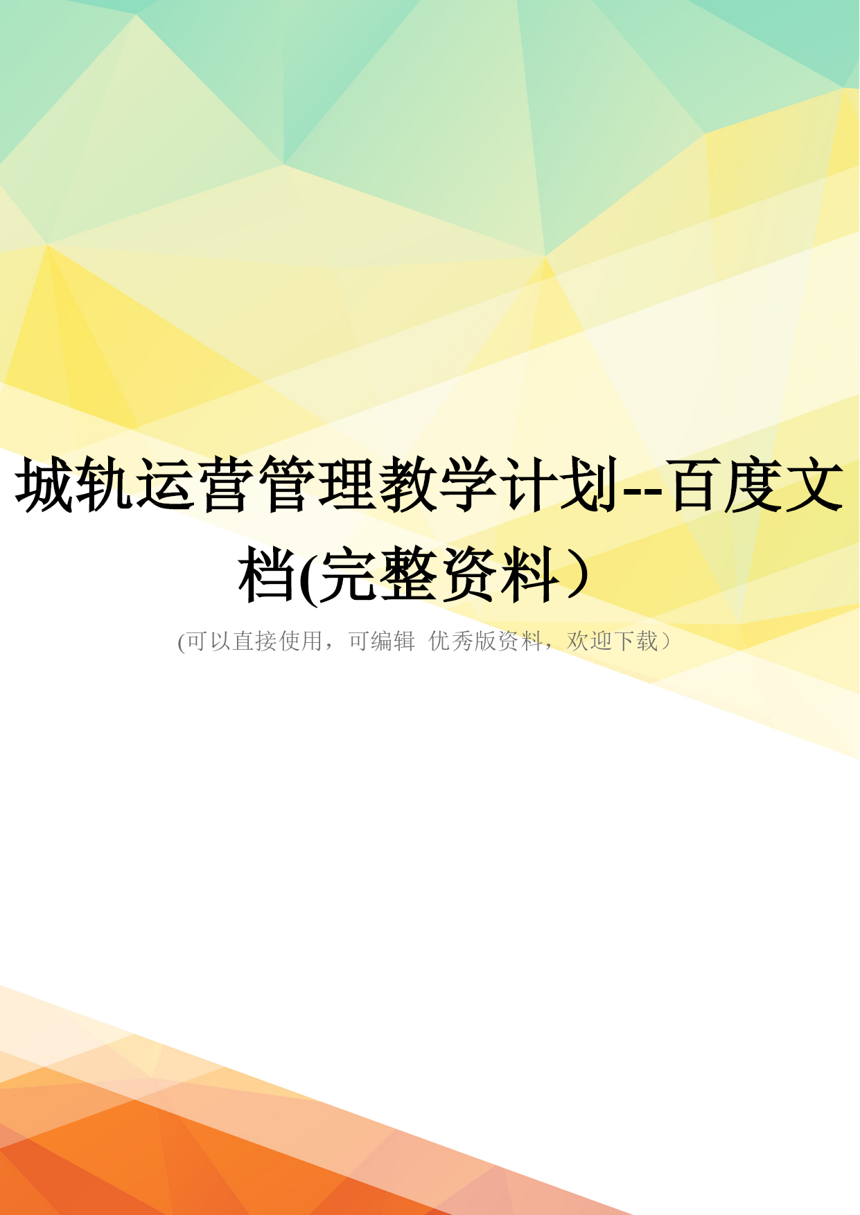 城轨运营管理教学计划--百度文档(完整资料).doc