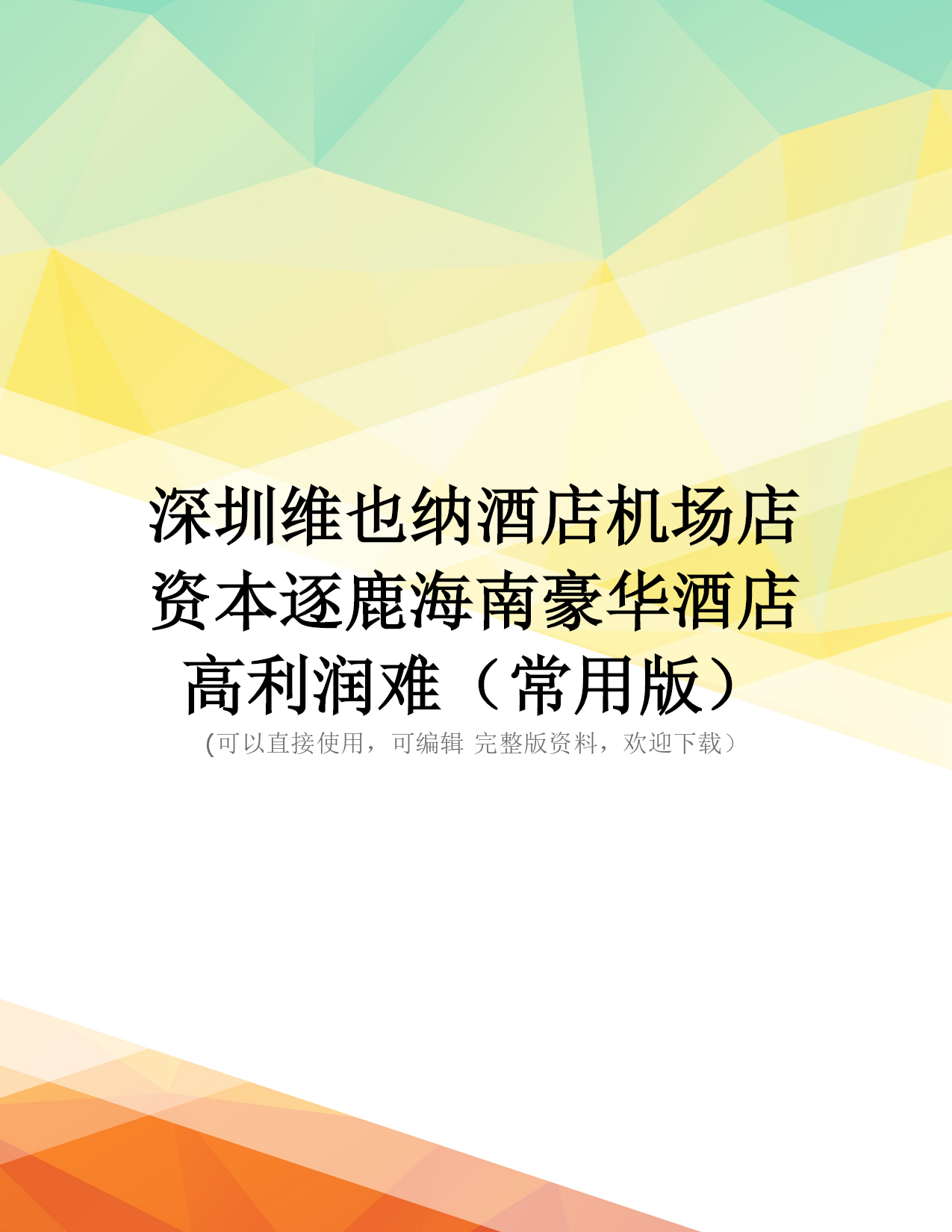 深圳维也纳酒店机场店-资本逐鹿海南豪华酒店-高利润难.doc