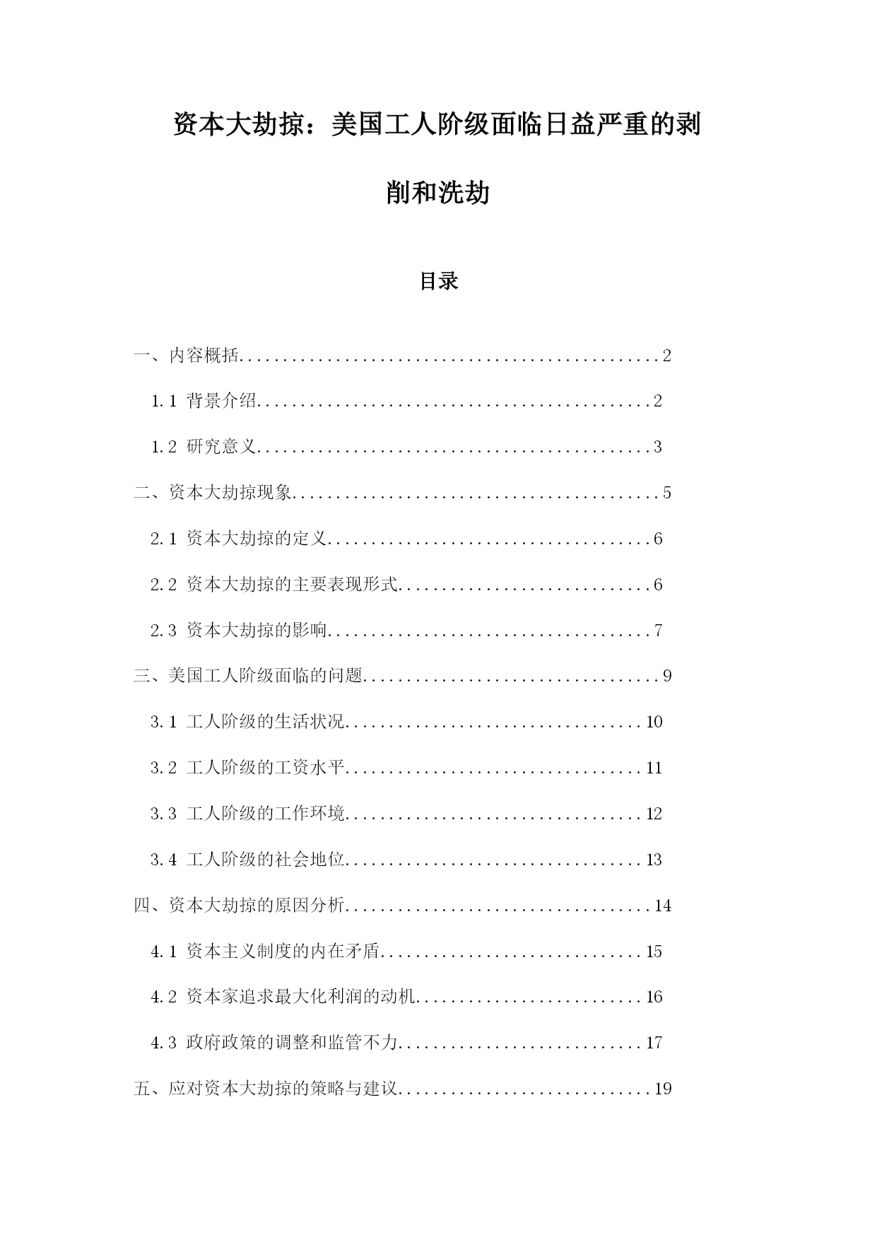 资本大劫掠:美国工人阶级面临日益严重的剥削和洗劫目录一、内容概括................................................21.1背景介绍.............................................21.2研究意义.............................................3二、资本大劫掠现象..........................................52.1资本大劫掠的定义.....