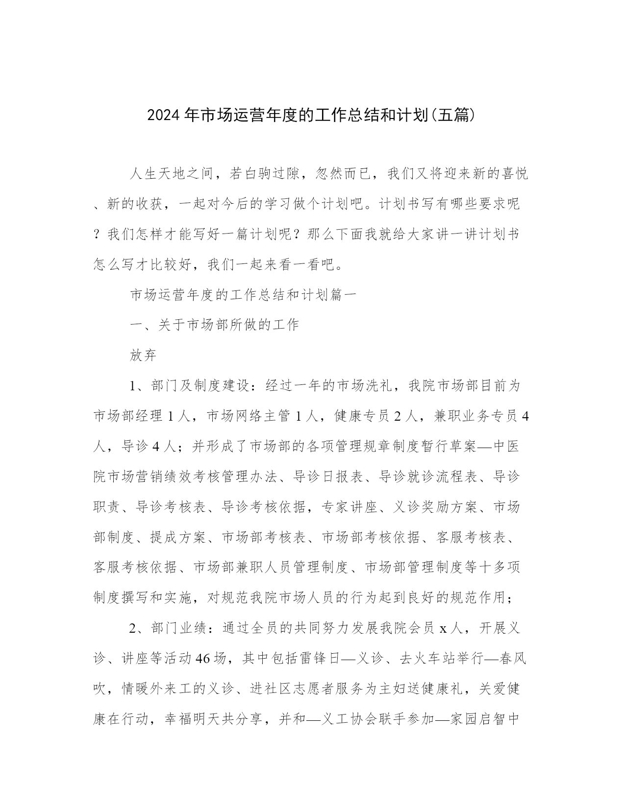 2024年市场运营年度的工作总结和计划(五篇).docx