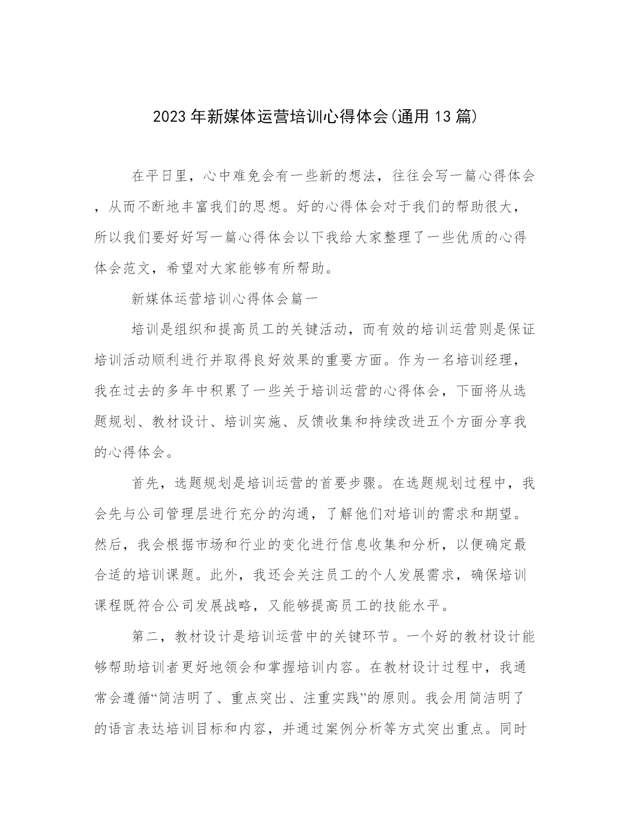 2023年新媒体运营培训心得体会(通用13篇).docx