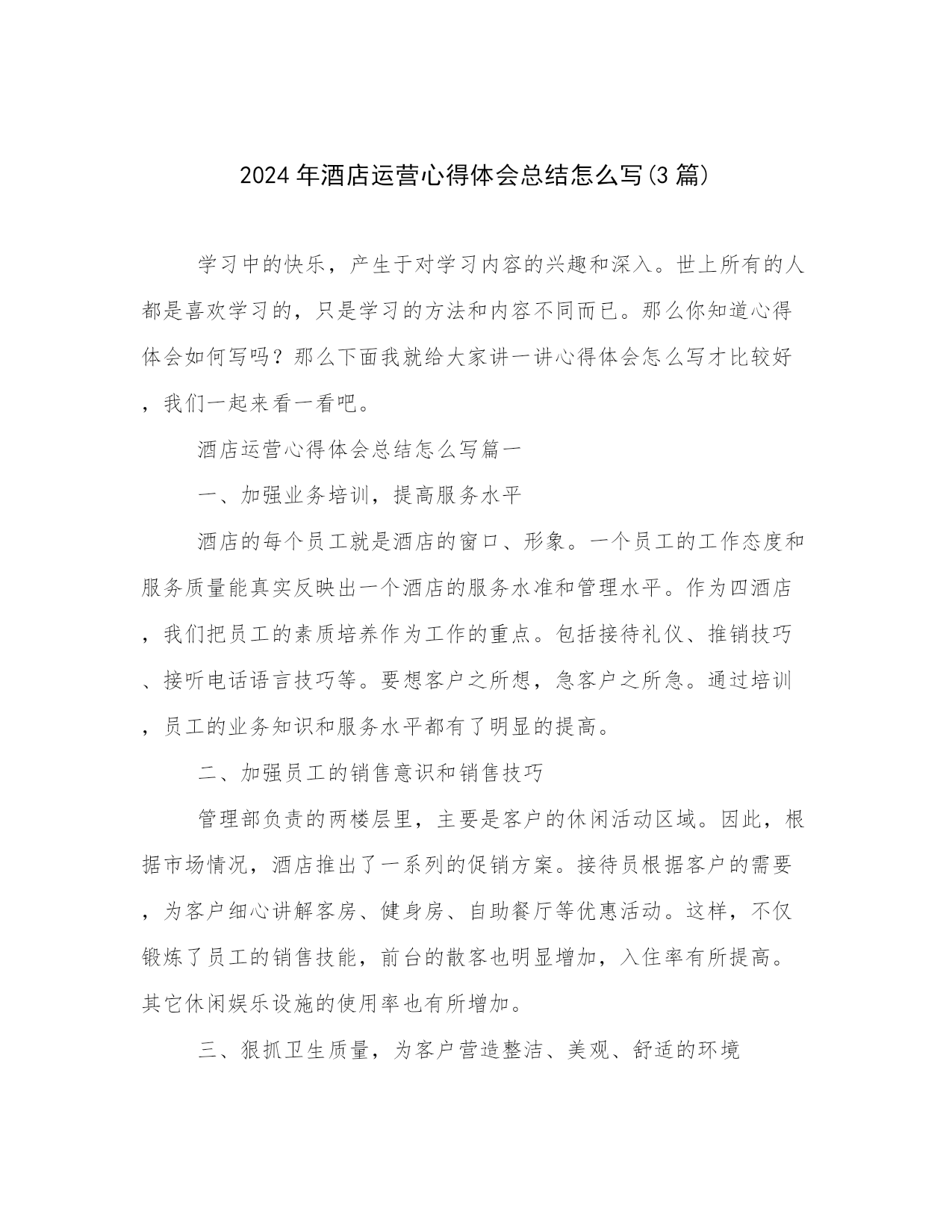 2024年酒店运营心得体会总结怎么写(3篇).docx