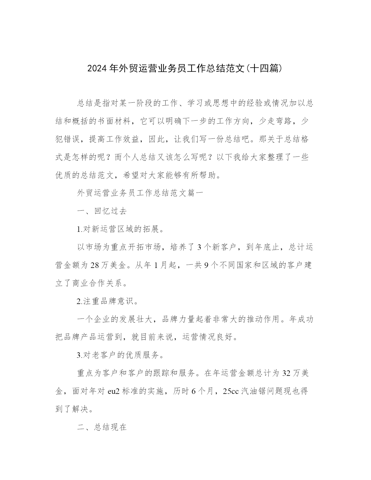 2024年外贸运营业务员工作总结范文(十四篇).docx