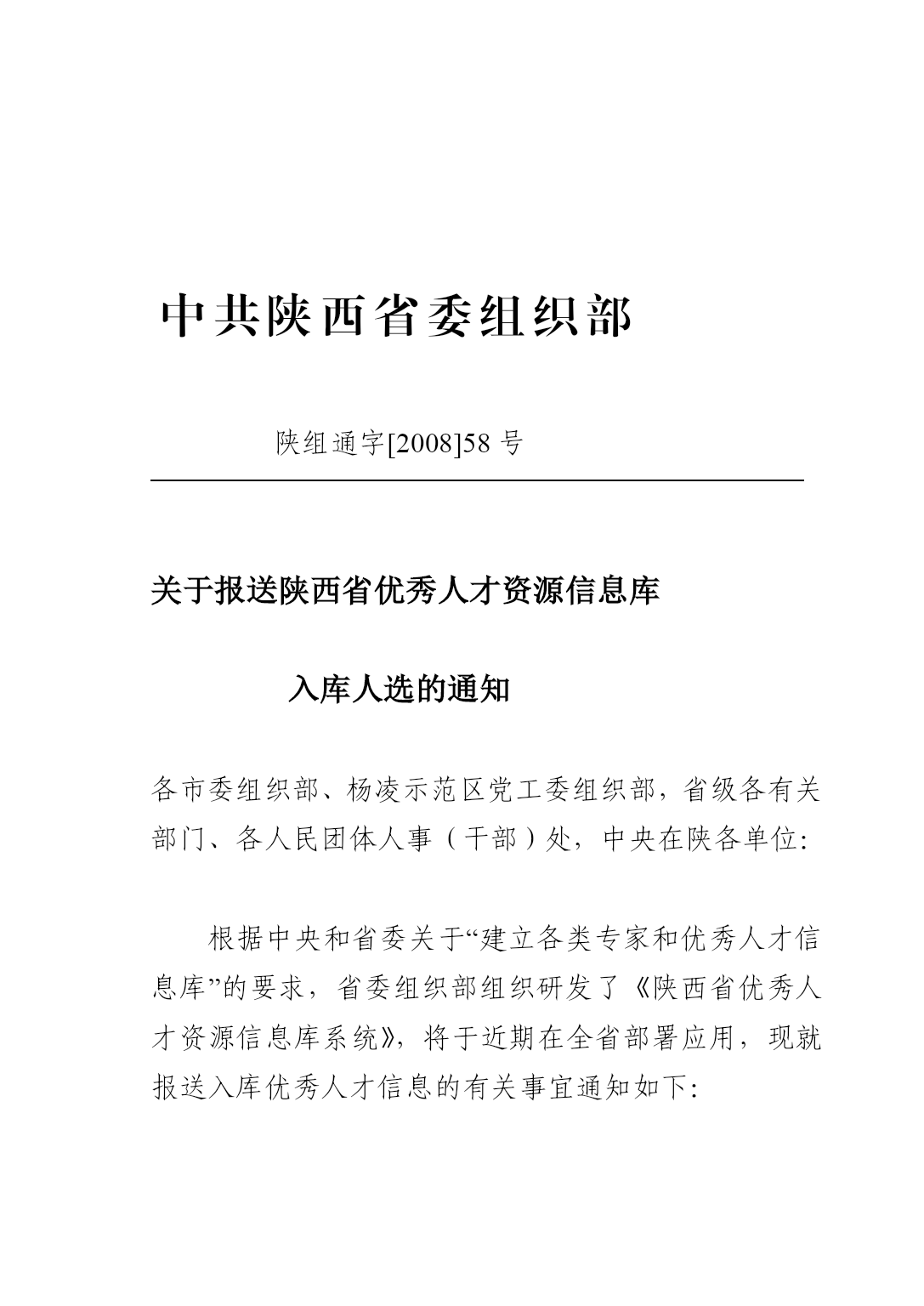 关于报送陕西省优夫君才资本信息库进库人选的告诉[精品].doc