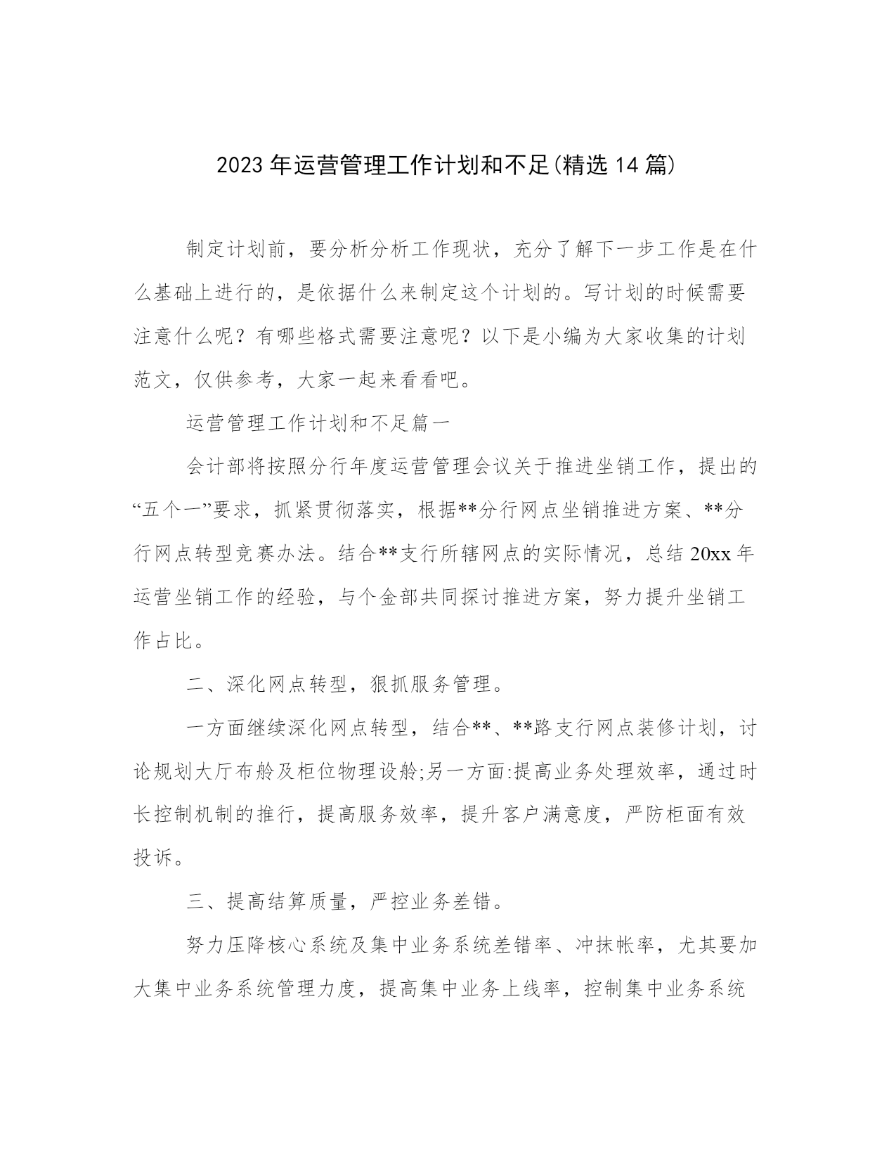 2023年运营管理工作计划和不足(精选14篇).docx