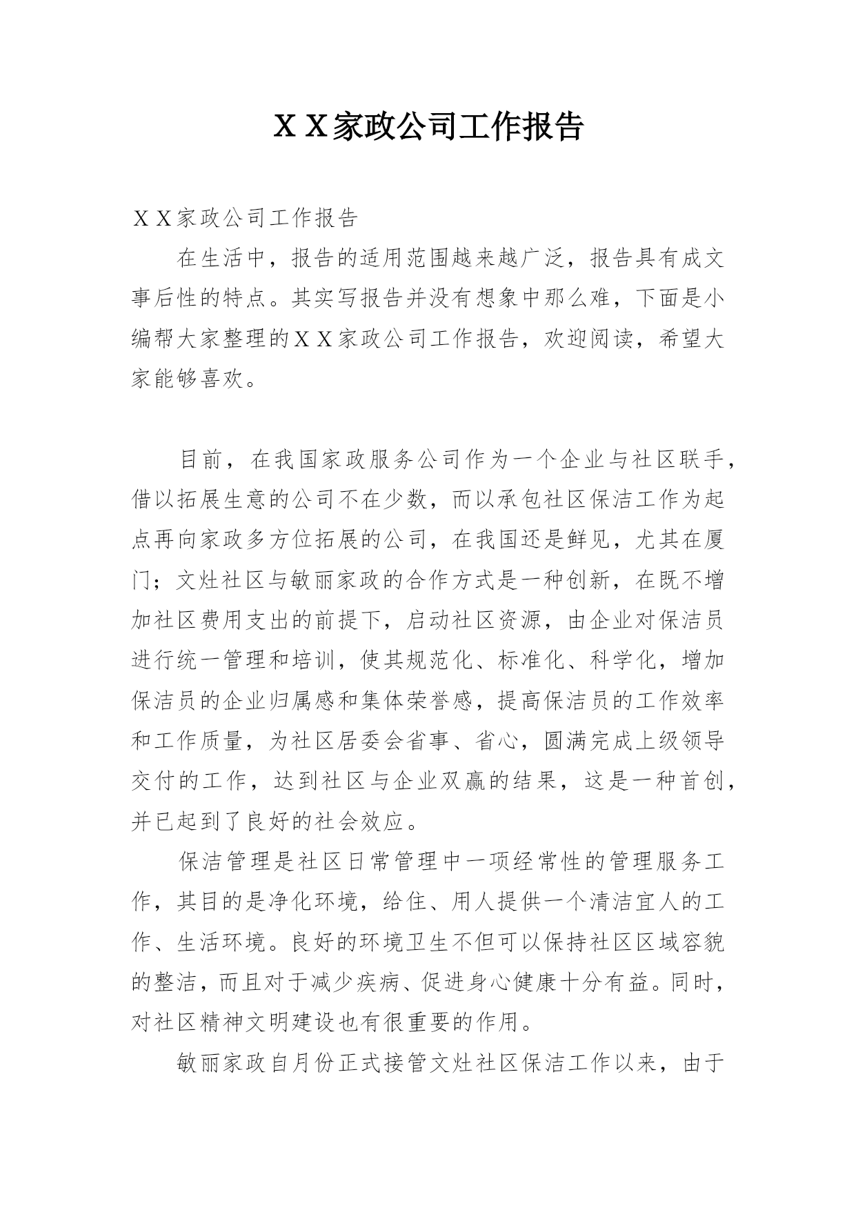 XX家政公司工作报告.docx