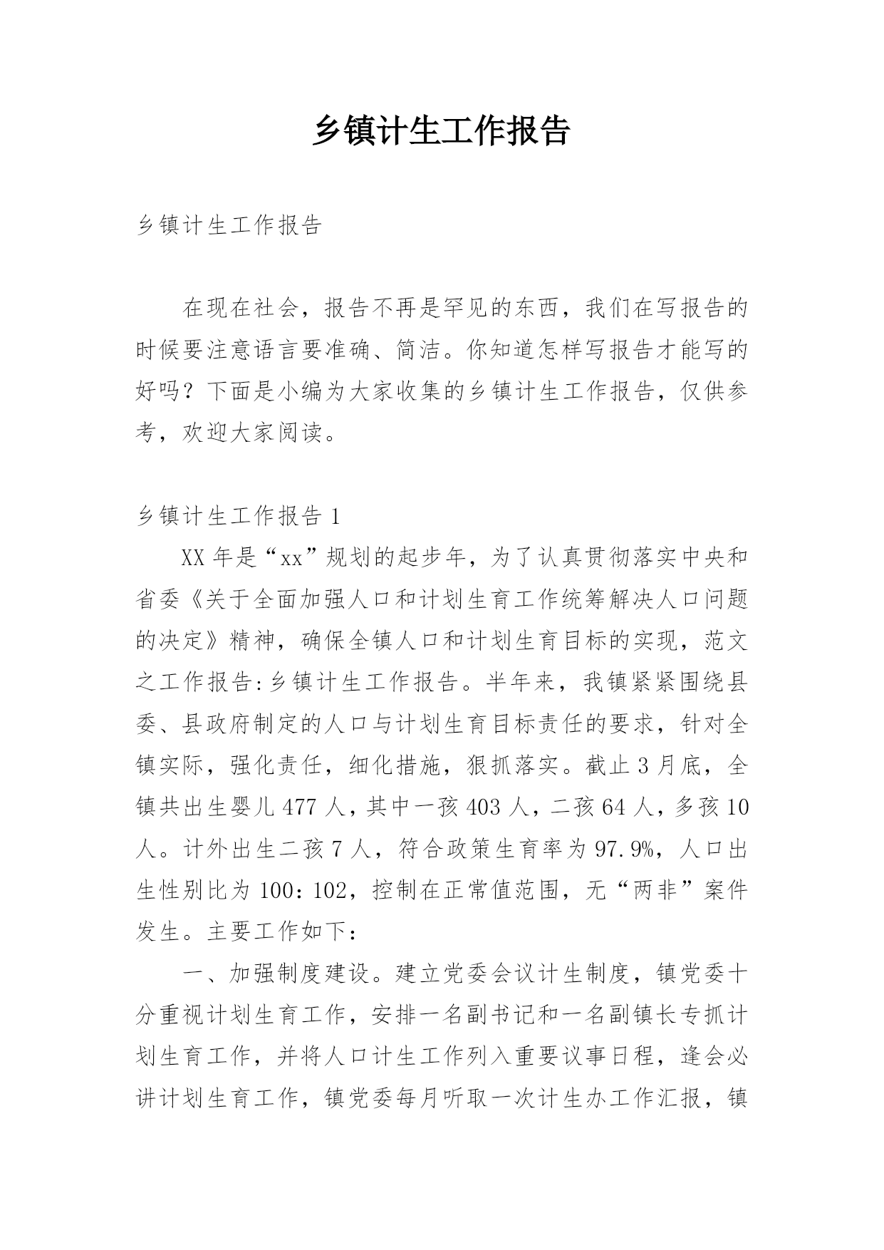 乡镇计生工作报告乡镇计生工作报告在现在社会,报告不再是罕见的东西,我们在写报告的时候要注意语言要准确、简洁。你知道怎样写报告才能写的好吗?下面是小编为大家收集的乡镇计生工作报告,仅供参考,欢迎大家阅读。乡镇计生工作报告1XX年是“xx”规划的起步年,为了认真贯彻落实中央和省委《关于全面加强人口和计划生育工作统筹解决人口问题的决定》精神,确保全镇人口和计划生育目标的实现,范文之工作报告:乡镇计生工作报告。半年来,我镇紧紧围绕县委、县政府制定的人口与计划生育目标责任的要求,针对全镇实际,强化责任,细化措施,狠