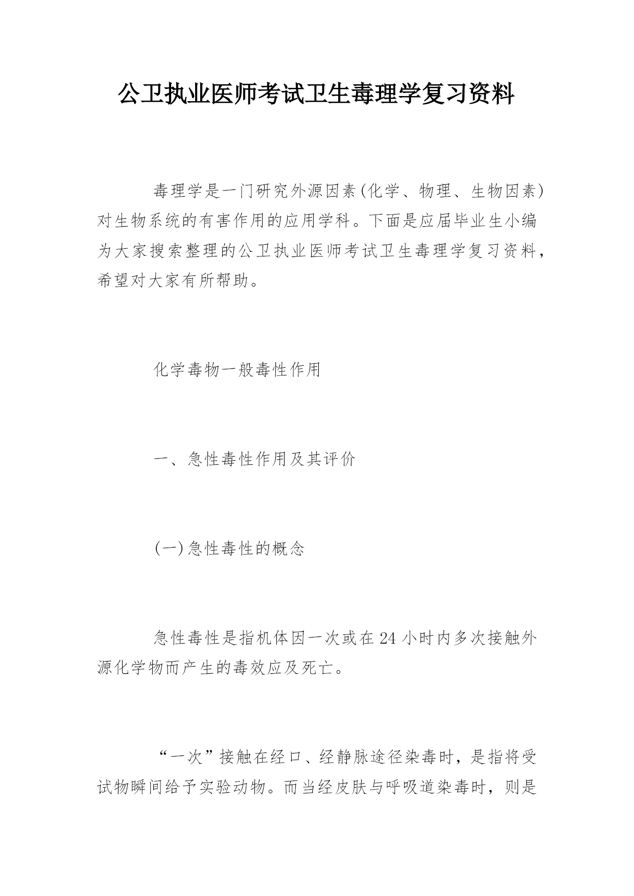 公卫执业医师考试卫生毒理学辅导资料.docx