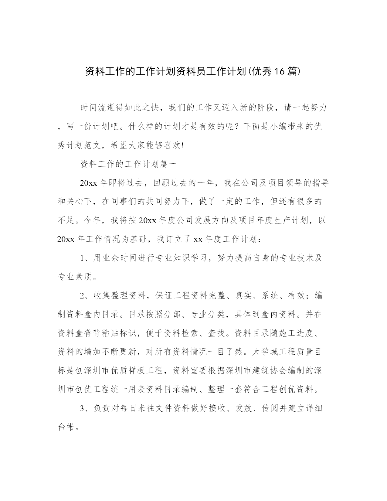 资料工作的工作计划资料员工作计划(优秀16篇).docx