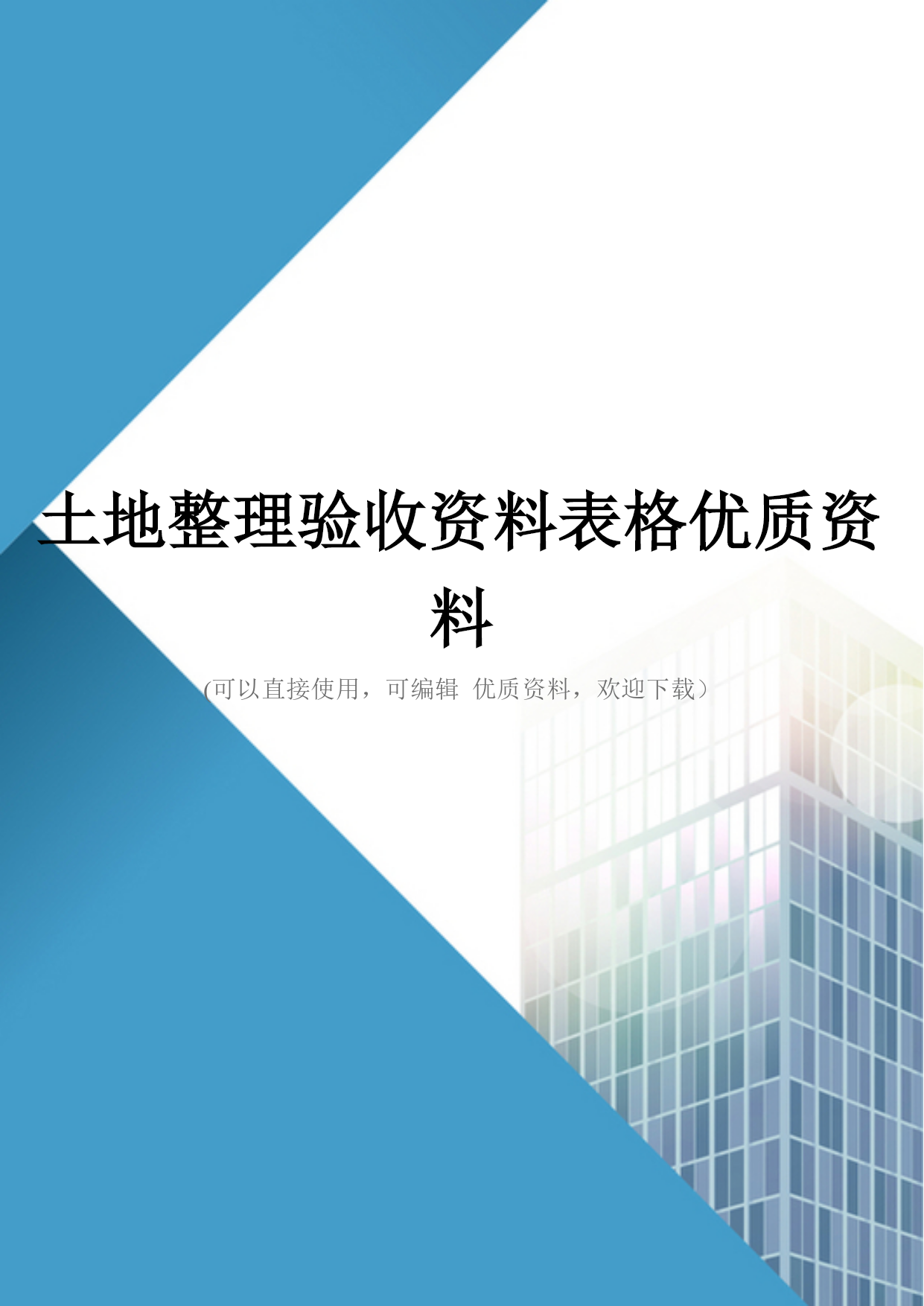 土地整理验收资料表格优质资料(可以直接使用,可编辑优质资料,欢迎下载)第一章项目资料的分类A类表(监理规范上要求的施工单位用表)1、工程开工/复工报审表2、施工组织设计(方案)报审表3、分包单位报审表4、施工测量报审表5、施工进度计划报审表6、材料/构配件/设备进场报审表7、工程质量报验表8、工程计量报验单9、计日工工程量签证单10、用工、料、机动态表11、工程款支付申请表12、工程延期报审表13、监理通知回复单14、竣工移交证书B类表(监理单位用表)1、监理通知2、旁站监理记录表3、工程暂停令4、工程款
