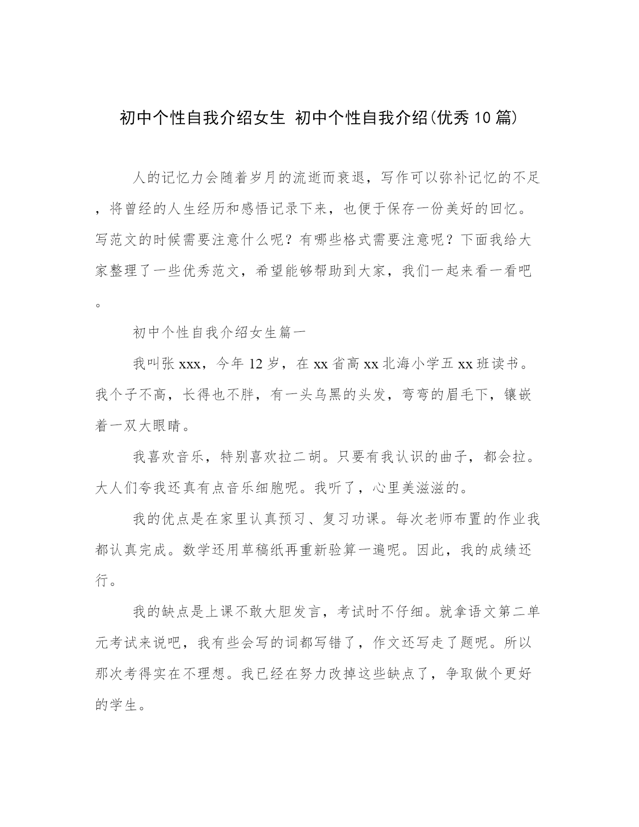 初中个性自我介绍女生 初中个性自我介绍(优秀10篇).docx
