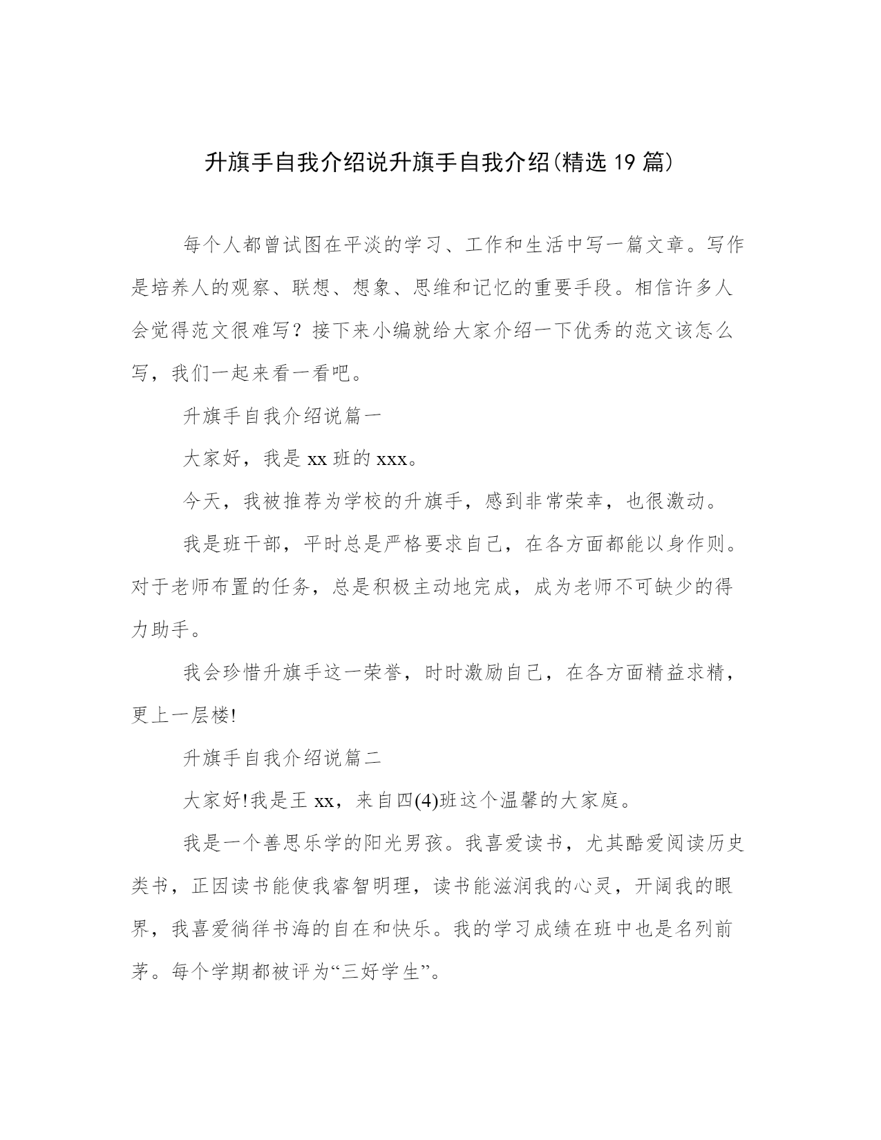 升旗手自我介绍说升旗手自我介绍(精选19篇).docx