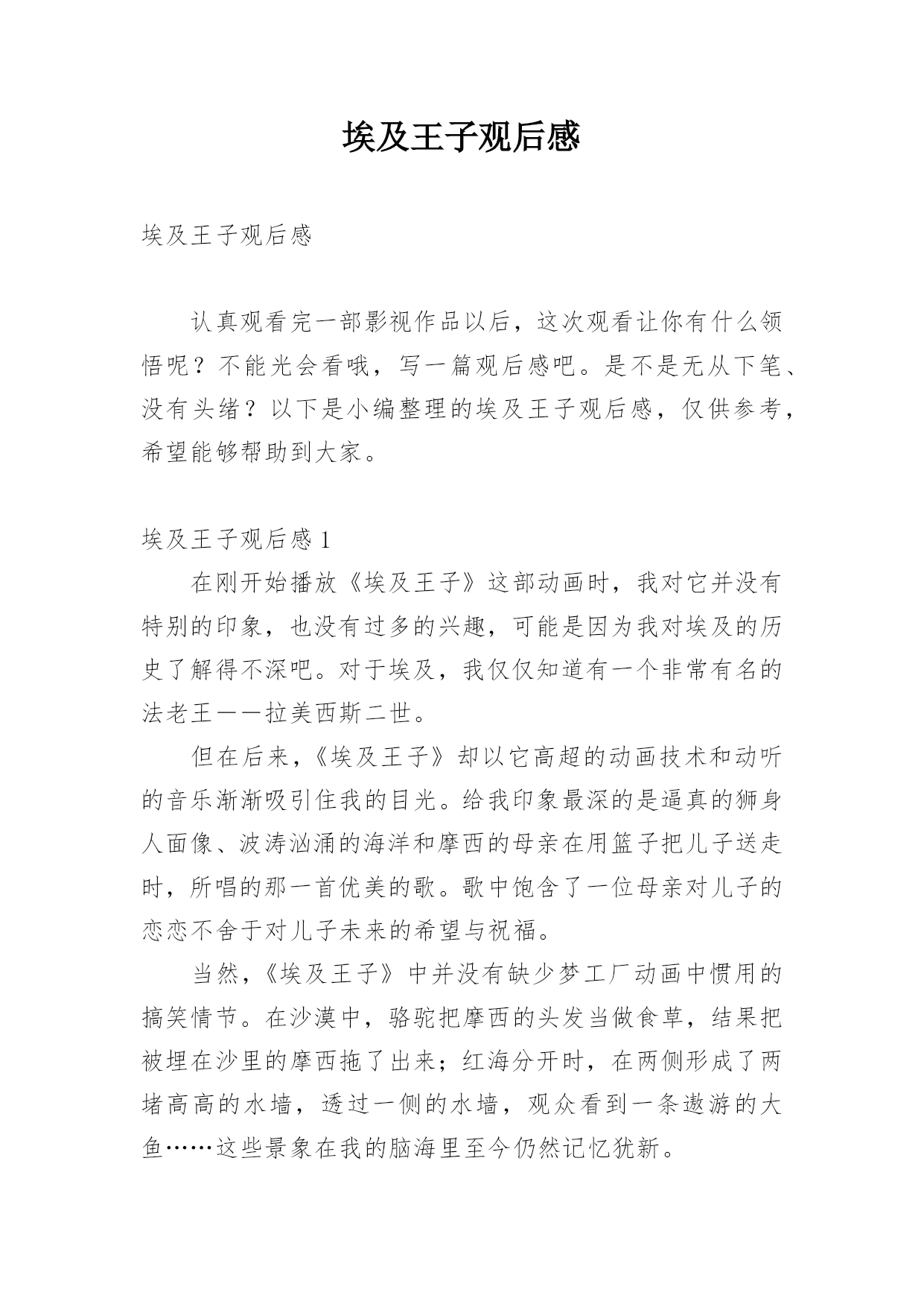 埃及王子观后感.docx