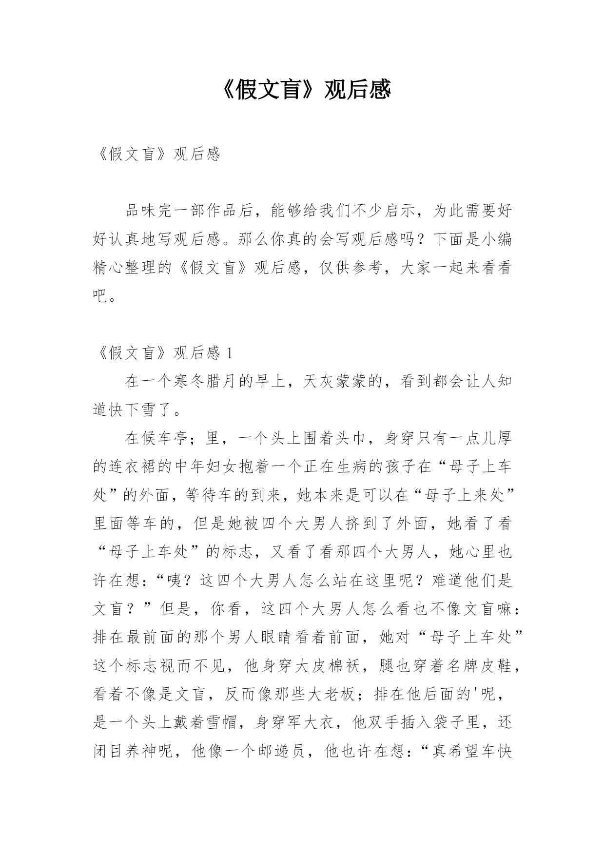 《假文盲》观后感《假文盲》观后感品味完一部作品后,能够给我们不少启示,为此需要好好认真地写观后感。那么你真的会写观后感吗?下面是小编精心整理的《假文盲》观后感,仅供参考,大家一起来看看吧。《假文盲》观后感1在一个寒冬腊月的早上,天灰蒙蒙的,看到都会让人知道快下雪了。在候车亭;里,一个头上围着头巾,身穿只有一点儿厚的连衣裙的中年妇女抱着一个正在生病的孩子在“母子上车处”的外面,等待车的到来,她本来是可以在“母子上来处”里面等车的,但是她被四个大男人挤到了外面,她看了看“母子上车处”的标志,又看了看那四个大男