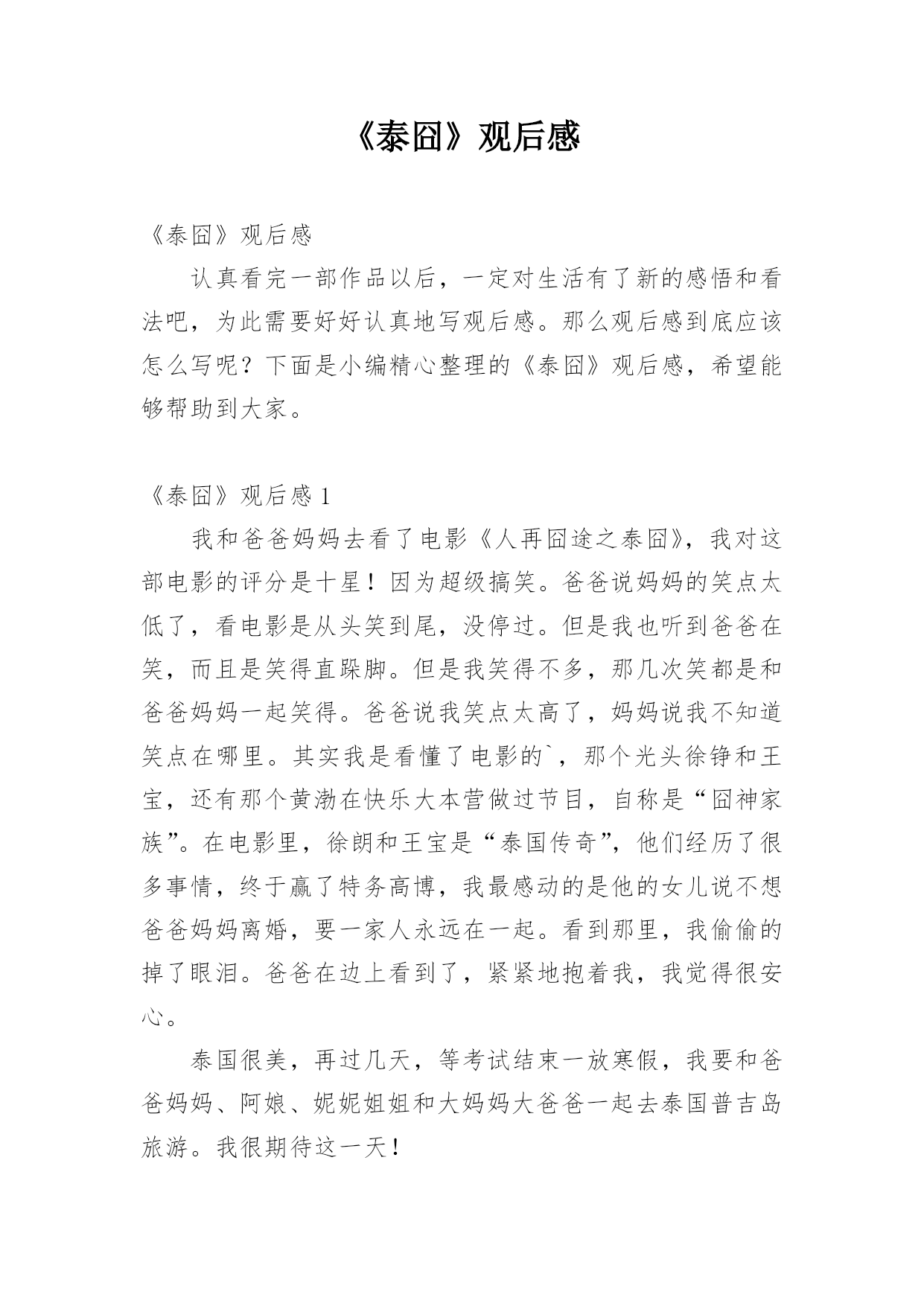 《泰囧》观后感《泰囧》观后感认真看完一部作品以后,一定对生活有了新的感悟和看法吧,为此需要好好认真地写观后感。那么观后感到底应该怎么写呢?下面是小编精心整理的《泰囧》观后感,希望能够帮助到大家。《泰囧》观后感1我和爸爸妈妈去看了电影《人再囧途之泰囧》,我对这部电影的评分是十星!因为超级搞笑。爸爸说妈妈的笑点太低了,看电影是从头笑到尾,没停过。但是我也听到爸爸在笑,而且是笑得直跺脚。但是我笑得不多,那几次笑都是和爸爸妈妈一起笑得。爸爸说我笑点太高了,妈妈说我不知道笑点在哪里。其实我是看懂了电影的`,那个光头