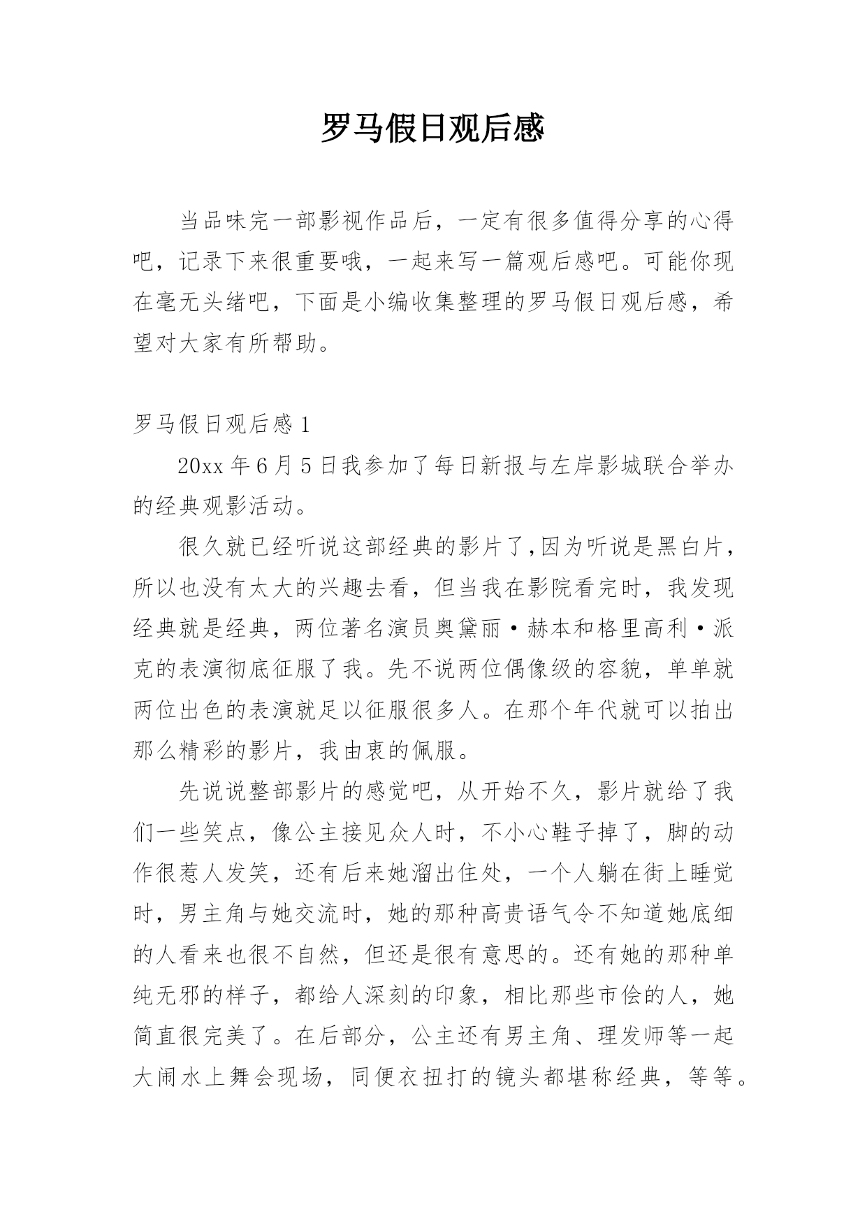 罗马假日观后感当品味完一部影视作品后,一定有很多值得分享的心得吧,记录下来很重要哦,一起来写一篇观后感吧。可能你现在毫无头绪吧,下面是小编收集整理的罗马假日观后感,希望对大家有所帮助。罗马假日观后感120xx年6月5日我参加了每日新报与左岸影城联合举办的经典观影活动。很久就已经听说这部经典的影片了,因为听说是黑白片,所以也没有太大的兴趣去看,但当我在影院看完时,我发现经典就是经典,两位著名演员奥黛丽·赫本和格里高利·派克的表演彻底征服了我。先不说两位偶像级的容貌,单单就两位出色的表演就足以征服很多人。在那