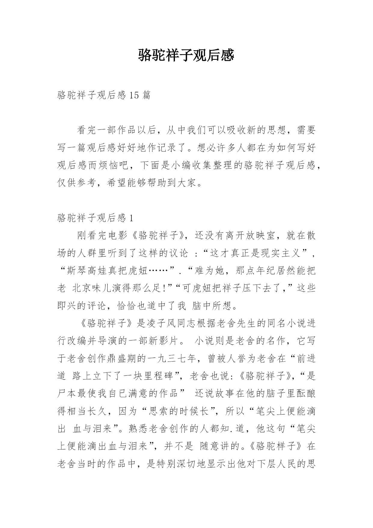 骆驼祥子观后感骆驼祥子观后感15篇看完一部作品以后,从中我们可以吸收新的思想,需要写一篇观后感好好地作记录了。想必许多人都在为如何写好观后感而烦恼吧,下面是小编收集整理的骆驼祥子观后感,仅供参考,希望能够帮助到大家。骆驼祥子观后感1刚看完电影《骆驼祥子》,还没有离开放映室,就在散场的人群里听到了这样的议论:“这才真正是现实主义”,“斯琴高娃真把虎妞……”.“难为她,那点年纪居然能把老北京味儿演得那么足!”“可虎妞把祥子压下去了,”这些即兴的评论,恰恰也道中了我脑中所想。《骆驼祥子》是凌子风同志根据老舍先生