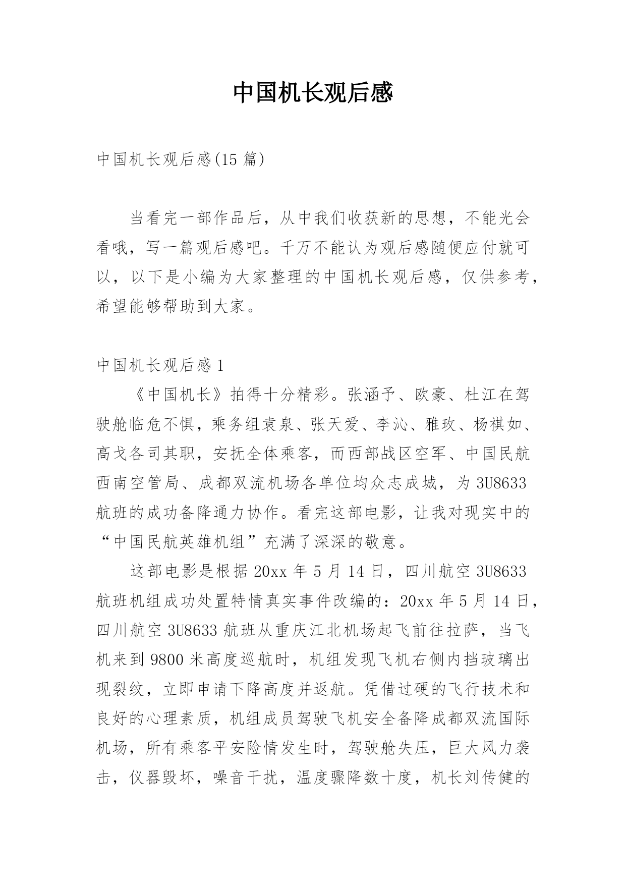 中国机长观后感中国机长观后感(15篇)当看完一部作品后,从中我们收获新的思想,不能光会看哦,写一篇观后感吧。千万不能认为观后感随便应付就可以,以下是小编为大家整理的中国机长观后感,仅供参考,希望能够帮助到大家。中国机长观后感1《中国机长》拍得十分精彩。张涵予、欧豪、杜江在驾驶舱临危不惧,乘务组袁泉、张天爱、李沁、雅玫、杨祺如、高戈各司其职,安抚全体乘客,而西部战区空军、中国民航西南空管局、成都双流机场各单位均众志成城,为3U8633航班的成功备降通力协作。看完这部电影,让我对现实中的“中国民航英雄机组”充