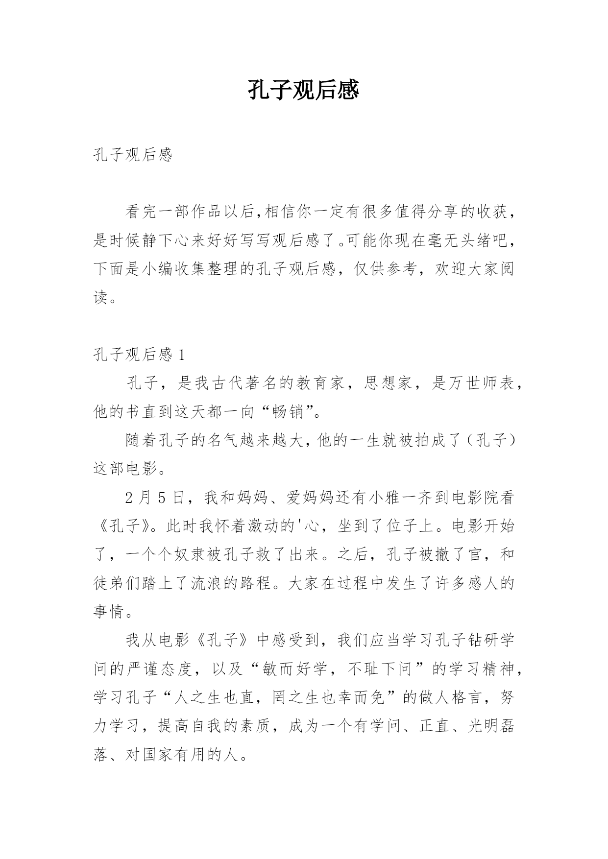孔子观后感孔子观后感看完一部作品以后,相信你一定有很多值得分享的收获,是时候静下心来好好写写观后感了。可能你现在毫无头绪吧,下面是小编收集整理的孔子观后感,仅供参考,欢迎大家阅读。孔子观后感1孔子,是我古代著名的教育家,思想家,是万世师表,他的书直到这天都一向“畅销”。随着孔子的名气越来越大,他的一生就被拍成了(孔子)这部电影。2月5日,我和妈妈、爱妈妈还有小雅一齐到电影院看《孔子》。此时我怀着激动的'心,坐到了位子上。电影开始了,一个个奴隶被孔子救了出来。之后,孔子被撤了官,和徒弟们踏上了流浪的路程。大