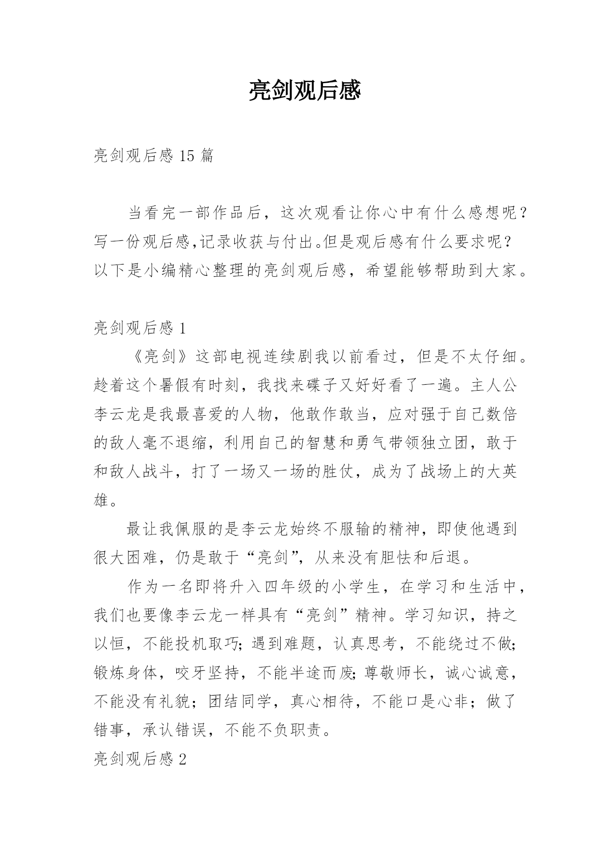 亮剑观后感亮剑观后感15篇当看完一部作品后,这次观看让你心中有什么感想呢?写一份观后感,记录收获与付出。但是观后感有什么要求呢?以下是小编精心整理的亮剑观后感,希望能够帮助到大家。亮剑观后感1《亮剑》这部电视连续剧我以前看过,但是不太仔细。趁着这个暑假有时刻,我找来碟子又好好看了一遍。主人公李云龙是我最喜爱的人物,他敢作敢当,应对强于自己数倍的敌人毫不退缩,利用自己的智慧和勇气带领独立团,敢于和敌人战斗,打了一场又一场的胜仗,成为了战场上的大英雄。最让我佩服的是李云龙始终不服输的精神,即使他遇到很大困难,