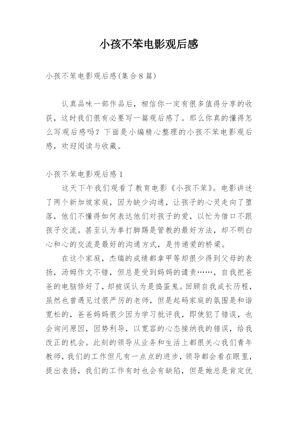 小孩不笨电影观后感小孩不笨电影观后感(集合8篇)认真品味一部作品后,相信你一定有很多值得分享的收获,这时我们很有必要写一篇观后感了。那么你真的懂得怎么写观后感吗?下面是小编精心整理的小孩不笨电影观后感,欢迎阅读与收藏。小孩不笨电影观后感1这天下午我们观看了教育电影《小孩不笨》。电影讲述了两个新加坡家庭,因为缺少沟通,让孩子的心灵走向了堕落,他们不懂得如何表达他们对孩子的爱,以忙为借口不跟孩子交流。甚至认为拳打脚踢是管教的最好方法,却不明白心和心的交流是最好的沟通方式,是传递爱的桥梁。在这个家庭,杰瑞的成绩