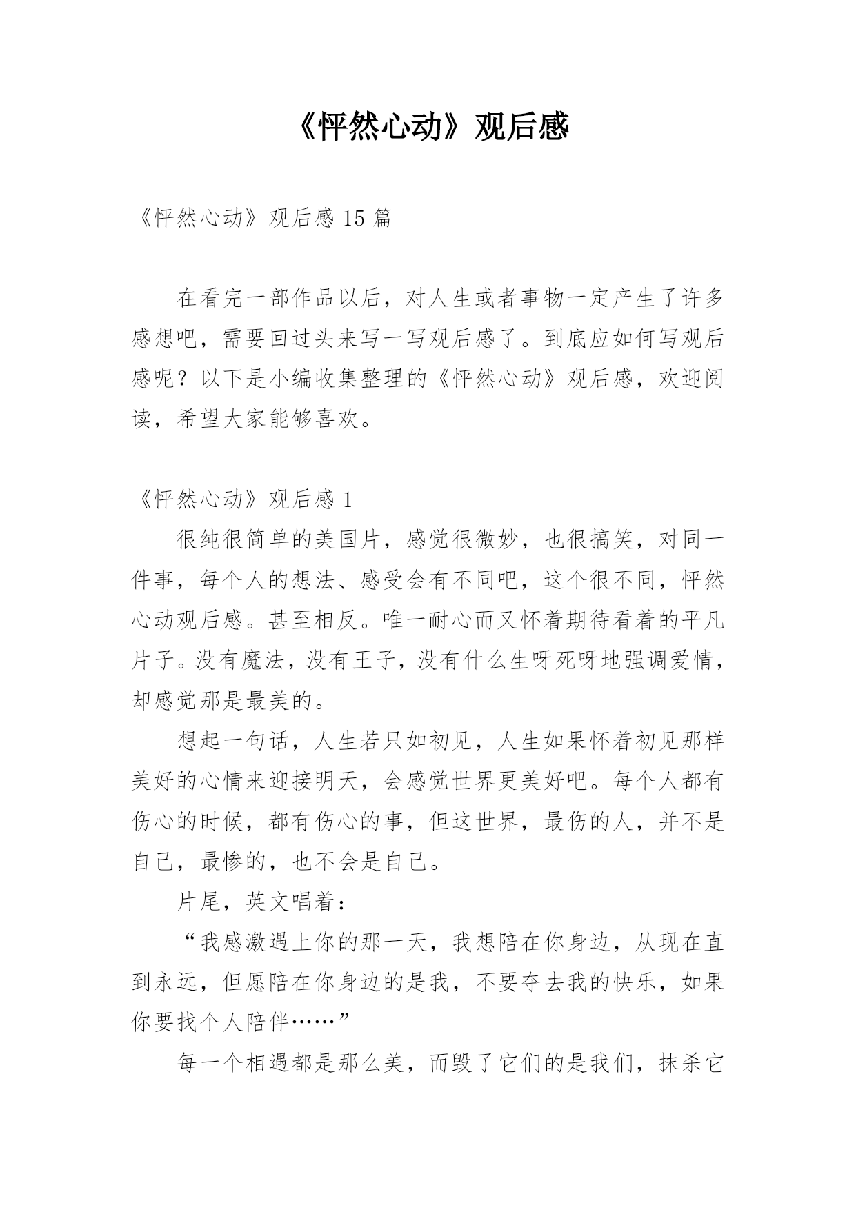 《怦然心动》观后感《怦然心动》观后感15篇在看完一部作品以后,对人生或者事物一定产生了许多感想吧,需要回过头来写一写观后感了。到底应如何写观后感呢?以下是小编收集整理的《怦然心动》观后感,欢迎阅读,希望大家能够喜欢。《怦然心动》观后感1很纯很简单的美国片,感觉很微妙,也很搞笑,对同一件事,每个人的想法、感受会有不同吧,这个很不同,怦然心动观后感。甚至相反。唯一耐心而又怀着期待看着的平凡片子。没有魔法,没有王子,没有什么生呀死呀地强调爱情,却感觉那是最美的。想起一句话,人生若只如初见,人生如果怀着初见那样美