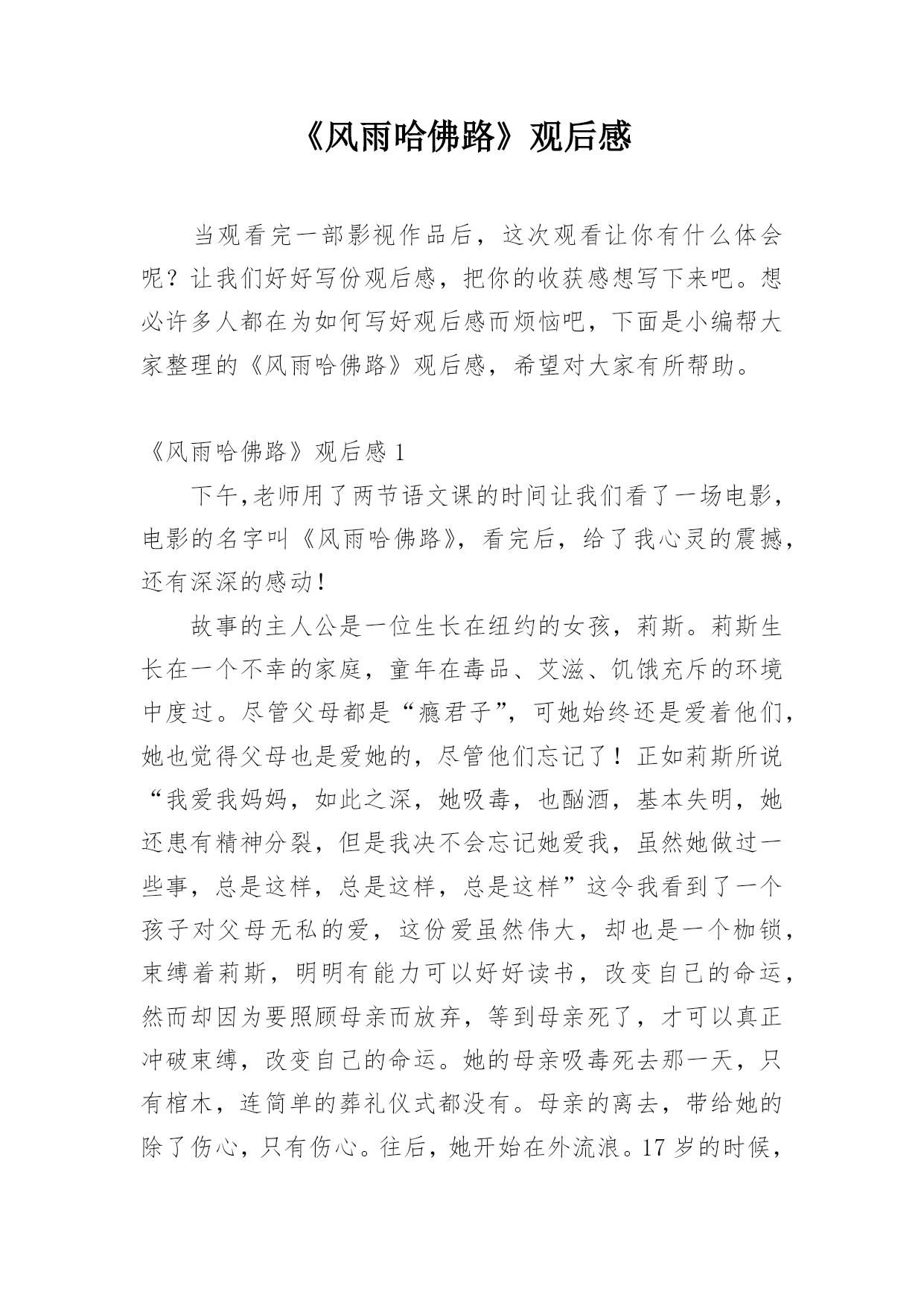 《风雨哈佛路》观后感当观看完一部影视作品后,这次观看让你有什么体会呢?让我们好好写份观后感,把你的收获感想写下来吧。想必许多人都在为如何写好观后感而烦恼吧,下面是小编帮大家整理的《风雨哈佛路》观后感,希望对大家有所帮助。《风雨哈佛路》观后感1下午,老师用了两节语文课的时间让我们看了一场电影,电影的名字叫《风雨哈佛路》,看完后,给了我心灵的震撼,还有深深的感动!故事的主人公是一位生长在纽约的女孩,莉斯。莉斯生长在一个不幸的家庭,童年在毒品、艾滋、饥饿充斥的环境中度过。尽管父母都是“瘾君子”,可她始终还是爱着