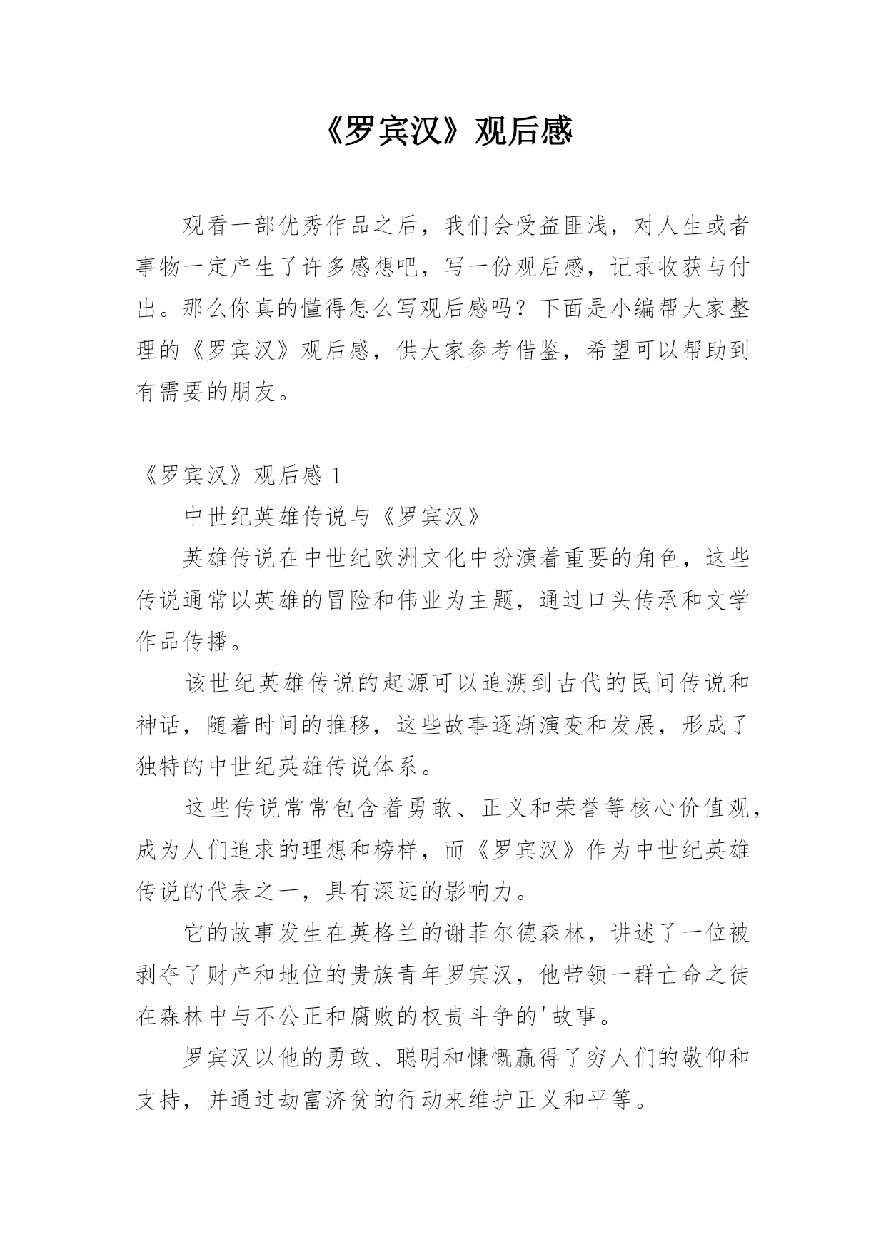 《罗宾汉》观后感观看一部优秀作品之后,我们会受益匪浅,对人生或者事物一定产生了许多感想吧,写一份观后感,记录收获与付出。那么你真的懂得怎么写观后感吗?下面是小编帮大家整理的《罗宾汉》观后感,供大家参考借鉴,希望可以帮助到有需要的朋友。《罗宾汉》观后感1中世纪英雄传说与《罗宾汉》英雄传说在中世纪欧洲文化中扮演着重要的角色,这些传说通常以英雄的冒险和伟业为主题,通过口头传承和文学作品传播。该世纪英雄传说的起源可以追溯到古代的民间传说和神话,随着时间的推移,这些故事逐渐演变和发展,形成了独特的中世纪英雄传说体系