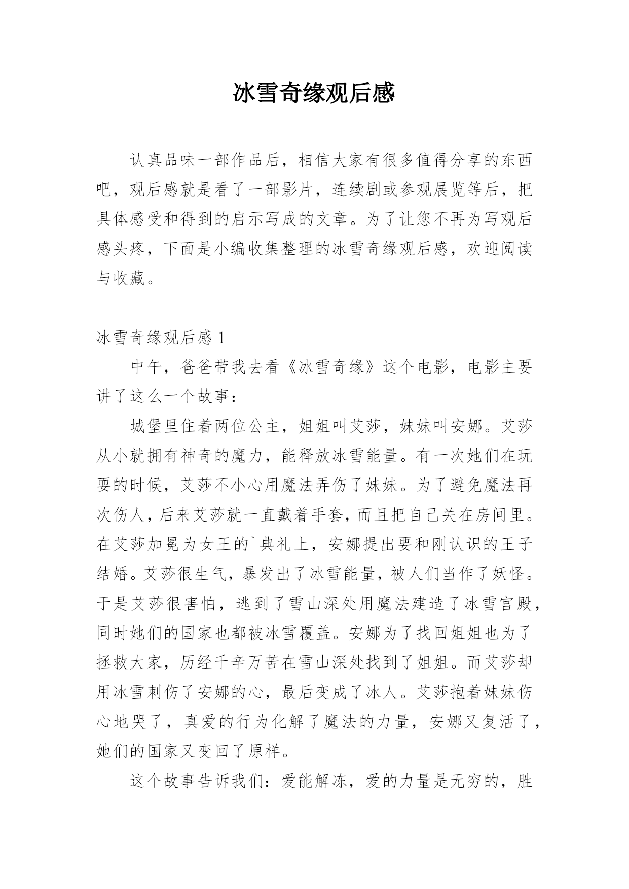 冰雪奇缘观后感.docx