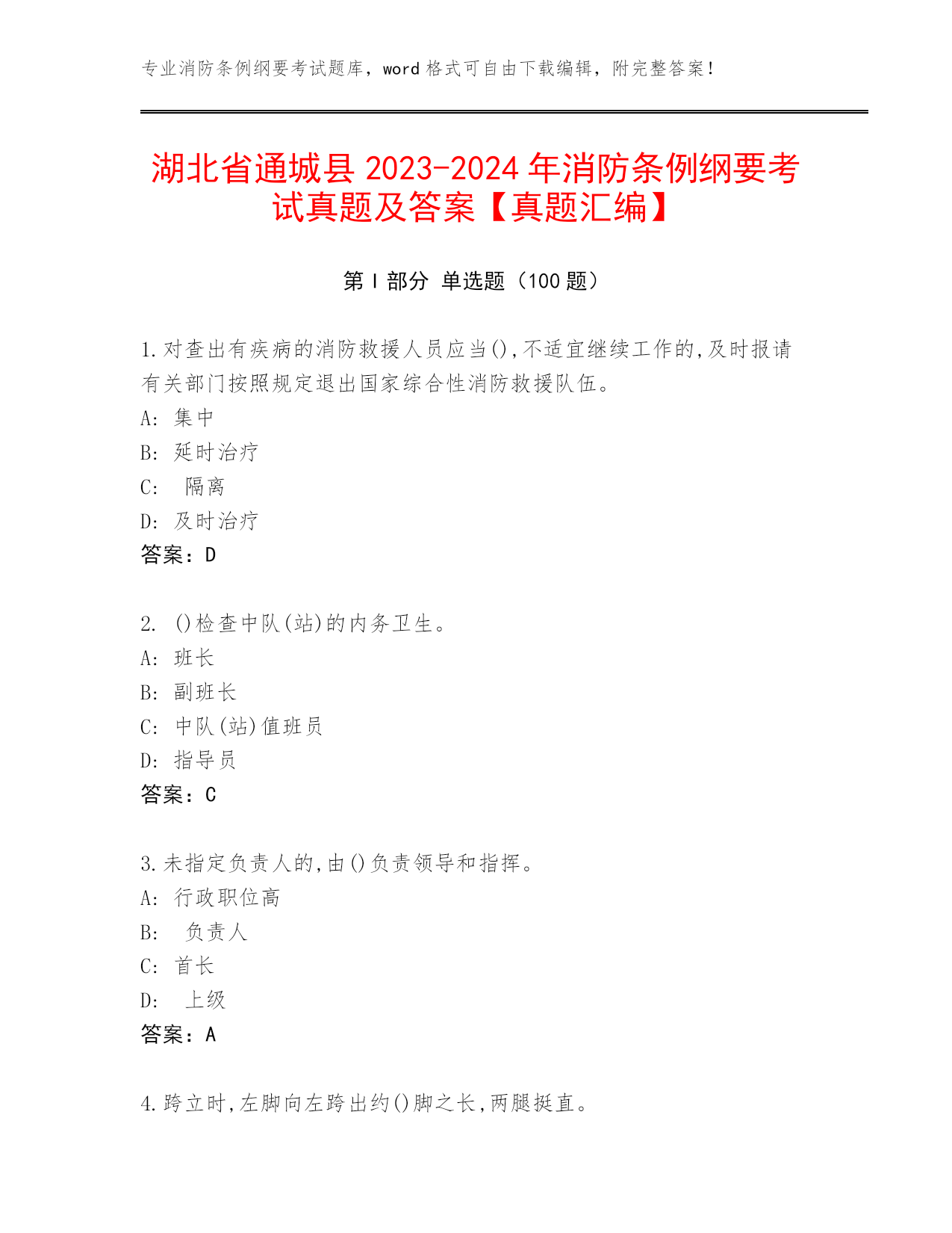 湖北省通城县2023-2024年消防条例纲要考试真题及答案【真题汇编】.docx