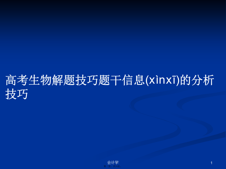 会计学“读懂题,是解对题的前提;快速抓住题意,在高考中可获得制胜的先机”。所以,掌握“快速而准确地提取题干中的信息”的方法是非常重要的。下面我们从“纯文字题干信息的提取”、“带图示题干信息的提取”、“借助问题信息,提取题干信息”、“有陷阱题干(或选项)信息的提取”等角度(jiǎodù)来探讨和总结“题干信息提取方法”的一般规律。一、纯文字题干信息(xìnxī)的提取(2)杂交类这类题一般有较长的文字叙述,主要叙述杂交过程及亲子代性状及比例。例如(lìrú),2009年全国卷Ⅰ的第5题等。(3)DNA复制类