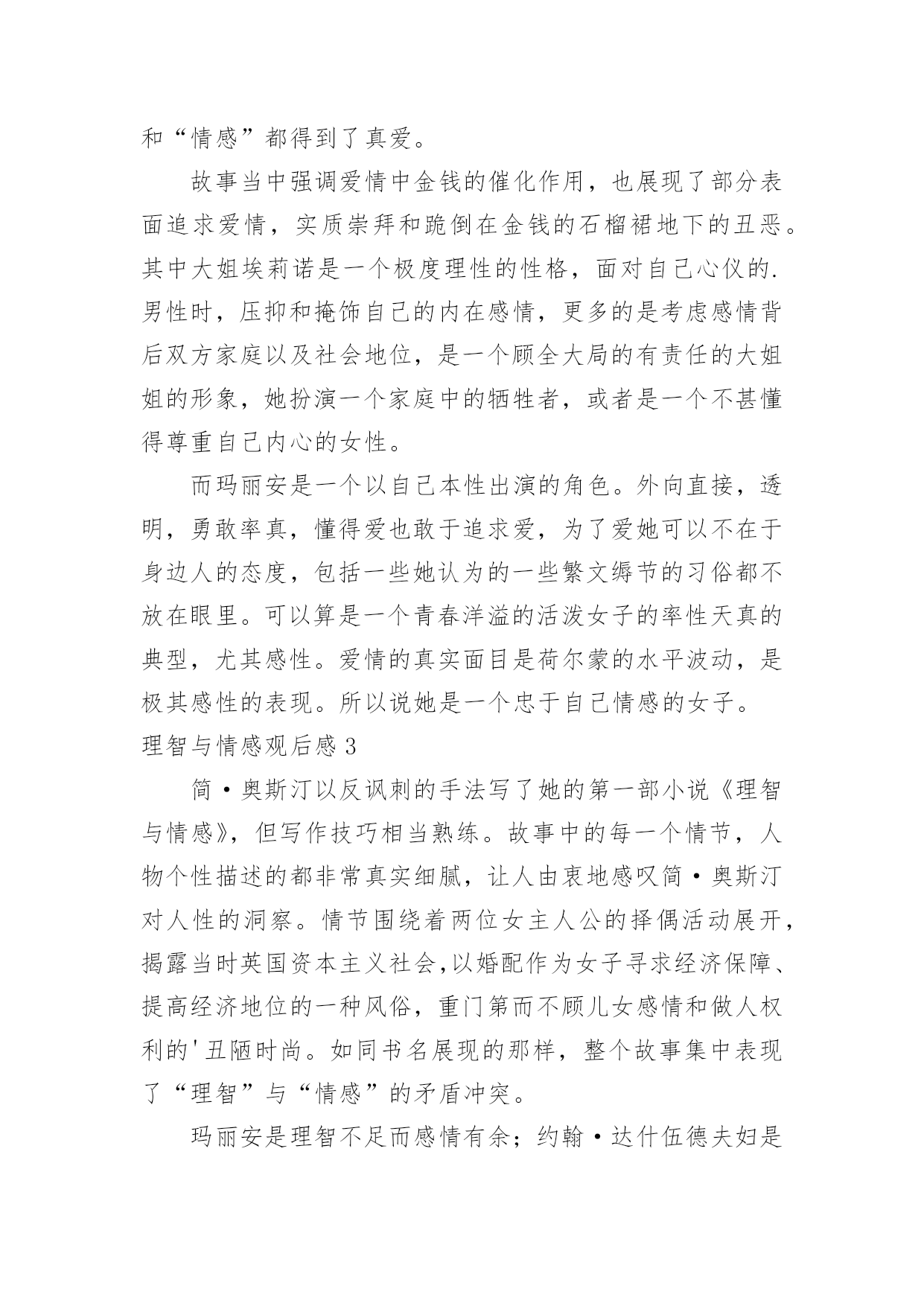 理智与情感观后感理智与情感观后感看完一部经典作品以后,大家一定收获不少吧,观后感需要表达真实的情感,不能虚假刻意。想必许多人都在为如何写好观后感而烦恼吧,以下是小编为大家整理的理智与情感观后感,仅供参考,希望能够帮助到大家。理智与情感观后感1也许是以为爱情是人生第一次可以自由选择的单属于自己的情感,才第一次感觉到理智与情感的交锋,当我的理性里面只是一团空气的时候,思想也没找到边旁部首,说出的话和听过的话像飘进理性的碎纸屑,尽管我不理解含义却感觉新鲜极了。最终纸屑被排挤到一边时,剩下的一大部分是稀薄透明的空气,反复忆起那些残屑飘荡的画面不会带给我思想上的'一点灵光,或换个答应世界的模式,却消耗让理性的容量更狭小与阴暗。殊不知,我有过的,并不会失去,都已经留在我人生的节点里了。会失去的是不属于我的。当初我凭着感性鼓动着一腔勇敢,抓住一叶纸就希冀它会是通向未来的车票,想着我和他会披荆斩棘走到车站,想着我们会一起看见沿途的风景。然而我们没有拿到同一车次车票的默契,只是寂静的结束关系如黑暗里一片湖的两岸。这边翻云覆雨对岸可能天朗气清,连天气都无话可谈了。怂字心上二人。花里胡哨的泡泡已经没有根据再吹起来,怂字二人剩一条心,是那个拿得起放不下的人的。感性含笑低头:好吧,贪吃,贪玩,贪恋。理性说:然自私自大,他聪明幽默有热爱。感性争辩:他和我一样会自卑孤独呢。理性回:只是频率不同。我喜欢叶芝《当你老了》里的场景,却没有虔诚的灵魂。我希望去教堂洁净我的灵魂,却向天父祷告了一堆愿望。我渐渐明白,感性是天然的,赤诚的体验热爱悲欢色彩。理性是真空的去经历去获取属于自己的经验,明辨是非的能力。而人是需要时时剔除和清理的系统,灵魂才得以归于宁静。理智与情感观后感2《理智与情感》是由李安执导,詹姆斯·弗雷特、哈里特·沃特尔、凯特·温丝莱特、艾伦·里克曼等主演,改编自英国女作家简·奥斯汀的同名小说的爱情电影,该影片于1995年在美国上映。1996年该片在第68届奥斯卡金像奖获得最佳改编剧本奖,以及最佳摄影、最佳服装设计等8项提名奖。《智与情感》又名《埃莉诺与玛丽安》,是简·奥斯汀除了《傲慢与偏见》的又一力作,与傲慢与偏见有异曲同工之妙。故事主要讲述埃莉诺与玛丽安在自己父亲,一个英国庄园主去世后,由于遗产法规定家产只传男不传女,而面临着扫地出门的命运,嫁一个好丈夫便成了她们的燃眉之急。sense大女儿为了全家的幸福她深深藏起自己的儿女私情;sensibility的小女儿为了追求爱情甘愿付出。最终“理智”和“情感”都得到了真爱。故事当中强调爱情中金钱的催化作用,也展现了部分表面追求爱情,实质崇拜和跪倒在金钱的石榴裙地下的丑恶。其中大姐埃莉诺是一个极度理性的性格,面对自己心仪的.男性时,压抑和掩饰自己的内在感情,更多的是考虑感情背后双方家庭以及社会地位,是一个顾全大局的有责任的大姐姐的形象,她扮演一个家庭中的牺牲者,或者是一个不甚懂得尊重自己内心的女性。而玛丽安是一个以自己本性出演的角色。外向直接,透明,勇敢率真,懂得爱也敢于追求爱,为了爱她可以不在于身边人的态度,包括一些她认为的一些繁文缛节的习俗都不放在眼里。可以算是一个青春洋溢的活泼女子的率性天真的典型,尤其感性。爱情的真实面目是荷尔蒙的水平波动,是极其感性的表现。所以说她是一个忠于自己情感的女子。理智与情感观后感3简·奥斯汀以反讽刺的手法写了她的第一部小说《理智与情感》,但写作技巧相当熟练。故事中的每一个情节,人物个性描述的都非常真实细腻,让人由衷地感叹简·奥斯汀对人性的洞察。情节围绕着两位女主人公的择偶活动展开,揭露当时英国资本主义社会,以婚配作为女子寻求经济保障、提高经济地位的一种风俗,重门第而不顾儿女感情和做人权利的'丑陋时尚。如同书名展现的那样,整个故事集中表现了“理智”与“情感”的矛盾冲突。玛丽安是理智不足而感情有余;约翰·达什伍德夫妇是理智有余而感情不足;而威洛比是感情上十分虚伪,表面上似乎很有情感,实际上却冷漠无情,自私透顶。简·奥斯汀在故事里对珍重感情的人物加以赞扬,尽管对哪些人在理智上的欠缺也不时加以讽刺;然而对缺少感情仅有理智或是在感情上虚伪的人,却表现出极度鄙视的态度。简·奥斯汀最赞赏的是埃莉诺,因为她即重感情又有理智。这里也阐述了简·奥斯汀在这个问题上的看法,即不能没有感情,也不能过于理智。故事的女主角均追求与男士思想感情的平等交流与沟通,要求社会地位上的平等权利,坚持选择伴侣的自由。这在当时的英国,应该是一种叛逆的行为。理智与情感好比一把双刃剑,坚持理智,可能会伤了情感,照顾情感,可能又失去理智。能很理智地处理情感,能在情感的一定范围内保持理智,当然最好,这是运用这把双刃剑的最好方式。但是,现实生活中,往往会面临着取舍时,你是理智多于情感呢?还是情感多于理智?或是像威洛比先生哪