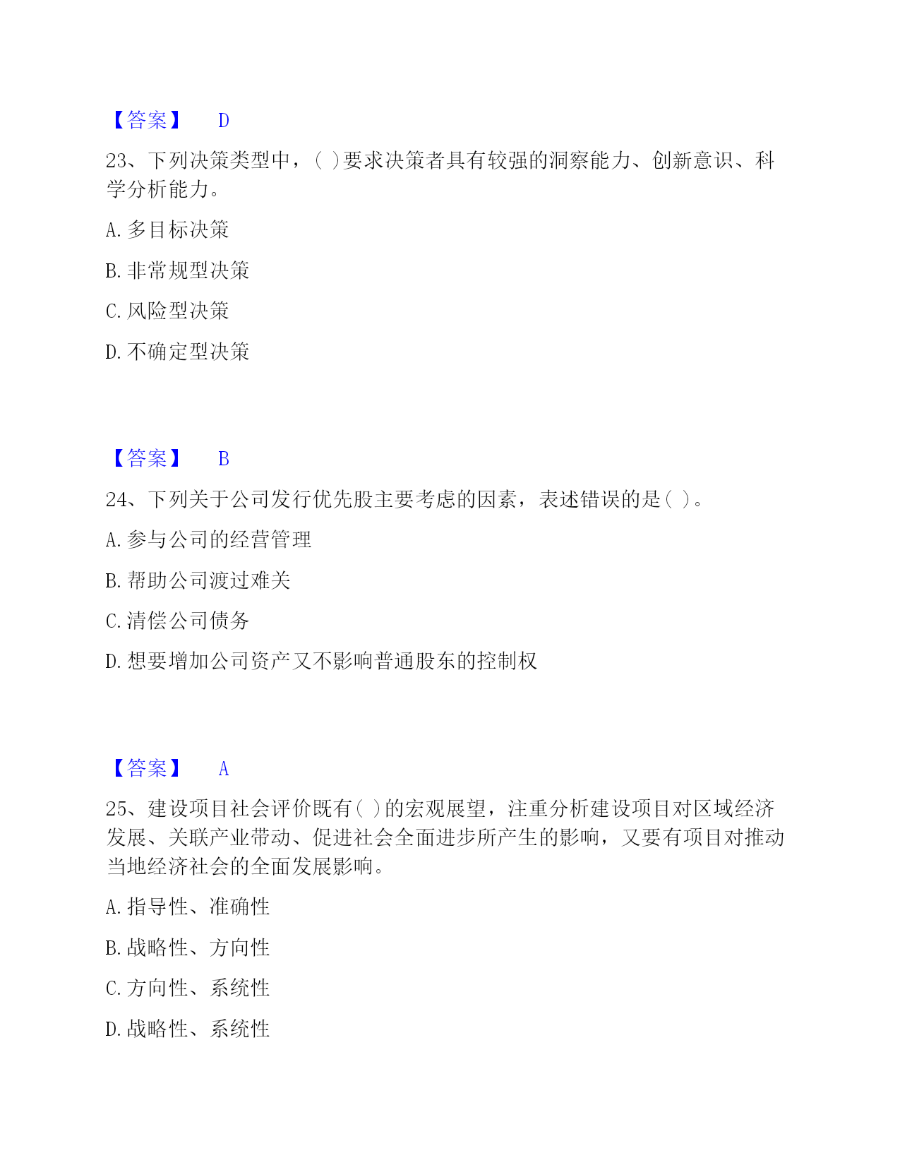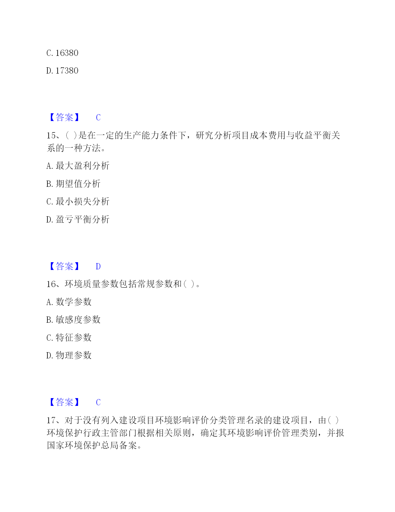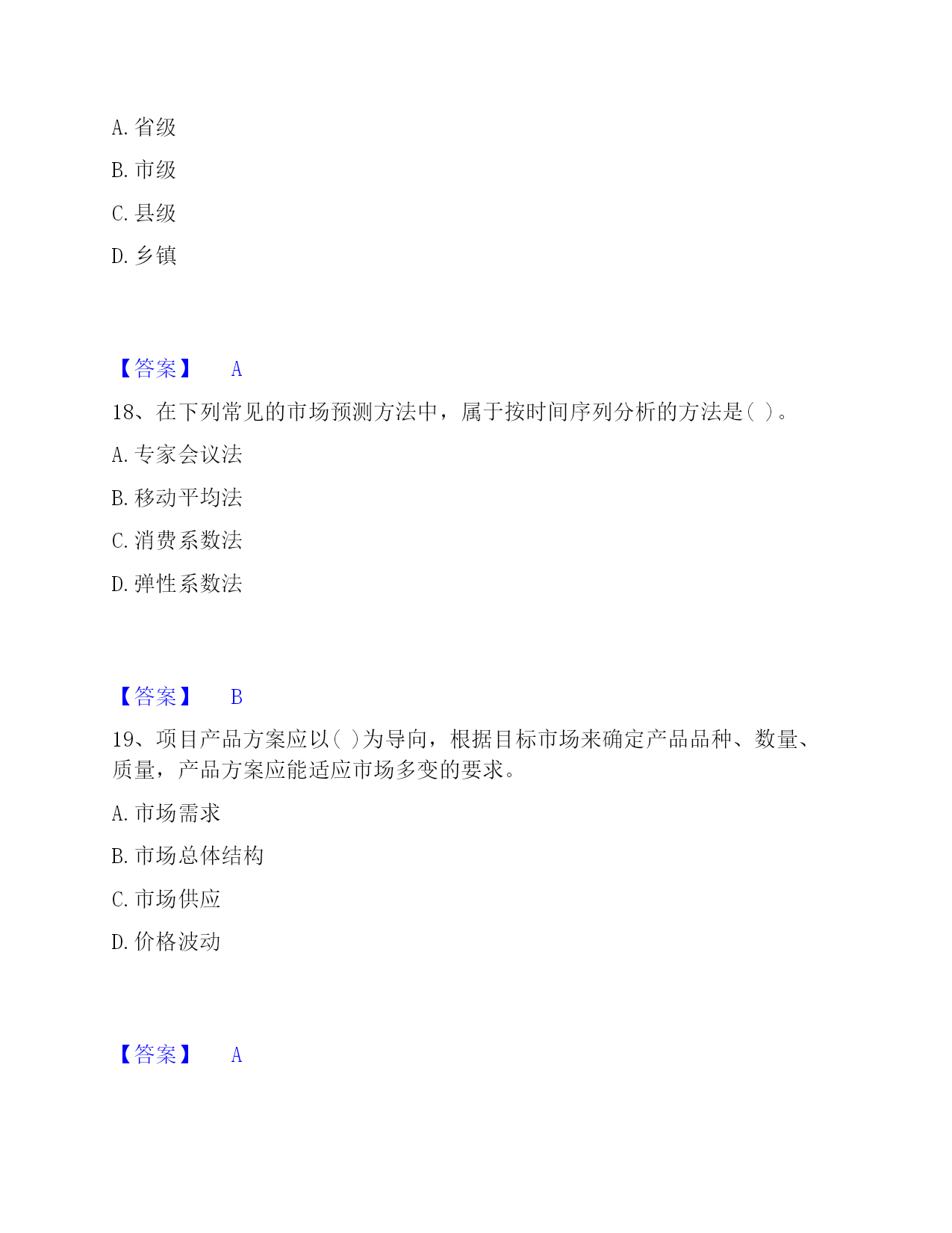 2022-2023年投资项目管理师之投资建设项目决策综合检测试卷A卷含答案单选题(共50题)1、工艺技术方案和工艺流程方案优化选择的()的基本要求是充分发挥投资效益,降低生产成本,以较少资金,获取更大效益。A.先进适用性B.安全可靠性C.经济合理性D.技术来源可得性【答案】C2、以下对建设项目的投资风险分析表达正确的是()。A.盈亏平衡点越低,抗风险能力也越强B.盈亏平衡点越低,抗风险能力也越弱C.不确定性因素的敏感性分析越敏感,项目的风险就越小D.盈亏平衡生产能力利用率越高,抗风险能力也越强【答案】A3、可行性研究一般从行业或企业角度,论证项目建设的必要性、市场前景、技术和经济的可行性,着重项目投资的()。A.宏观效益B.微观效益C.整体效益D.风险效益【答案】B4、下列对资源和环境的影响效果指标说法不正确的是()。A.B.项目的综合能耗水平低于社会平均能耗水平,说明项目具有较好的节能效果C.D.项目单位投资占地低于社会平均水平,说明项目具有较好的节约用地效果【答案】C5、在市场容量较大,或是市场的地域特征和地域优势明显时,由于竞争压力较小,项目采用()显得较为有利。A.自身研制开发B.工艺技术的成套购买C.技术许可证交易D.合资经营【答案】C6、下列选项中,()的取值应根据社会经济运行的实际情况、投资收益水平、资金供求状况、资金机会成本以及国家宏观调控目标取向等因素的综合分析确定,具体取值应执行国家有关规定。A.影子汇率B.社会折现率C.影子汇率换算系数D.内部收益率【答案】B7、如果在10年内,每年年末存入银行2000万元,年利率为8%,则10年后本利和为()万元。A.14487B.28974C.43461D.57948【答案】B8、按照消费者支付意愿的原则,通过其他相关市场价格信号,按照()的方法,寻找揭示这些影响的隐含价值,对其效果进行间接估算。A."选择偏好"B."揭示偏好"C."支付意愿"D."表达偏好"【答案】B9、环保治理采用的技术方案,应具有(),并对生产流程相关环节的污染进行全过程控制。A.客观性、科学性、可靠性B.先进性、适用性、可靠性C.科学性、适用性、可靠性D.经济性、客观性、可靠性【答案】B10、下列关于建设项目偿债能力指标的表述,错误的是()。A.偿债备付率是反映项目负债水平和偿债能力的综合指标B.不能简单地用资产负债率的高或低来判断项目负债状况的优劣C.利息备付率高,表明利息偿付的保障程度高D.对项目利息备付率的具体判断应结合债权人的要求而定【答案】A11、土地影子费用中新增资源消耗一般包括()。A.土地补偿费和青苗补偿费B.劳动力安置的有关费用和土地补偿费C.拆迁费用和征地补偿费D.拆迁费用和劳动力安置的有关费用【答案】D12、通过项目的实施,对增加企业收入、推进现代企业制度的建立、企业结构改革、产权制度改革、实现政府职能转变等方面的影响,这所体现的项目经济影响层次为()。A.社会组织层面B.部门层面C.区域和宏观经济层面D.产业层面【答案】A13、()是客户通过谈判选择咨询公司的方式。A.公开招标B.邀请招标C.竞争性谈判D.竞争性招标【答案】C14、某人想在第5年年底获得10万元,每年存款金额相等,年利率为10%,则每年需存款()元。A.15380B.14380C.16380D.17380【答案】C15、()是在一定的生产能力条件下,研究分析项目成本费用与收益平衡关系的一种方法。A.最大盈利分析B.期望值分析C.最小损失分析D.盈亏平衡分析【答案】D16、环境质量参数包括常规参数和()。A.数学参数B.敏感度参数C.特征参数D.物理参数【答案】C17、对于没有列入建设项目环境影响评价分类管理名录的建设项目,由()环境保护行政主管部门根据相关原则,确定其环境影响评价管理类别,并报国家环境保护总局备案。A.省级B.市级C.县级D.乡镇【答案】A18、在下列常见的市场预测方法中,属于按时间序列分析的方法是()。A.专家会议法B.移动平均法C.消费系数法D.弹性系数法【答案】B19、项目产品方案应以()为导向,根据目标市场来确定产品品种、数量、质量,产品方案应能适应市场多变的要求。A.市场需求B.市场总体结构C.市场供应D.价格波动【答案】A20、在一个坐标上画出风险出现的可能性以及重要性,可以()地进行社会风险评价和管理。A.准确B.定量C.系统D.定性【答案】D21、对于政