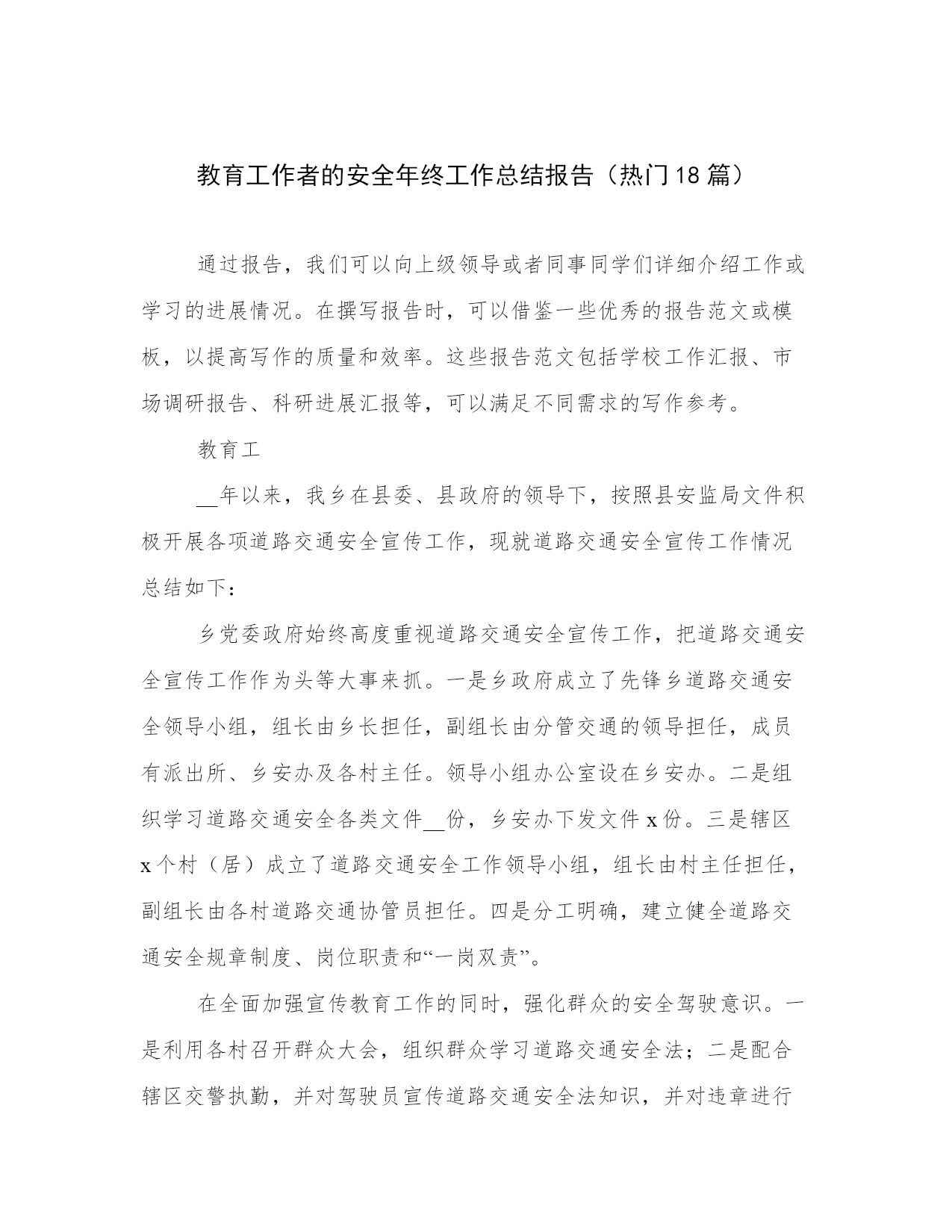 教育工作者的安全年终工作总结报告(热门18篇).docx