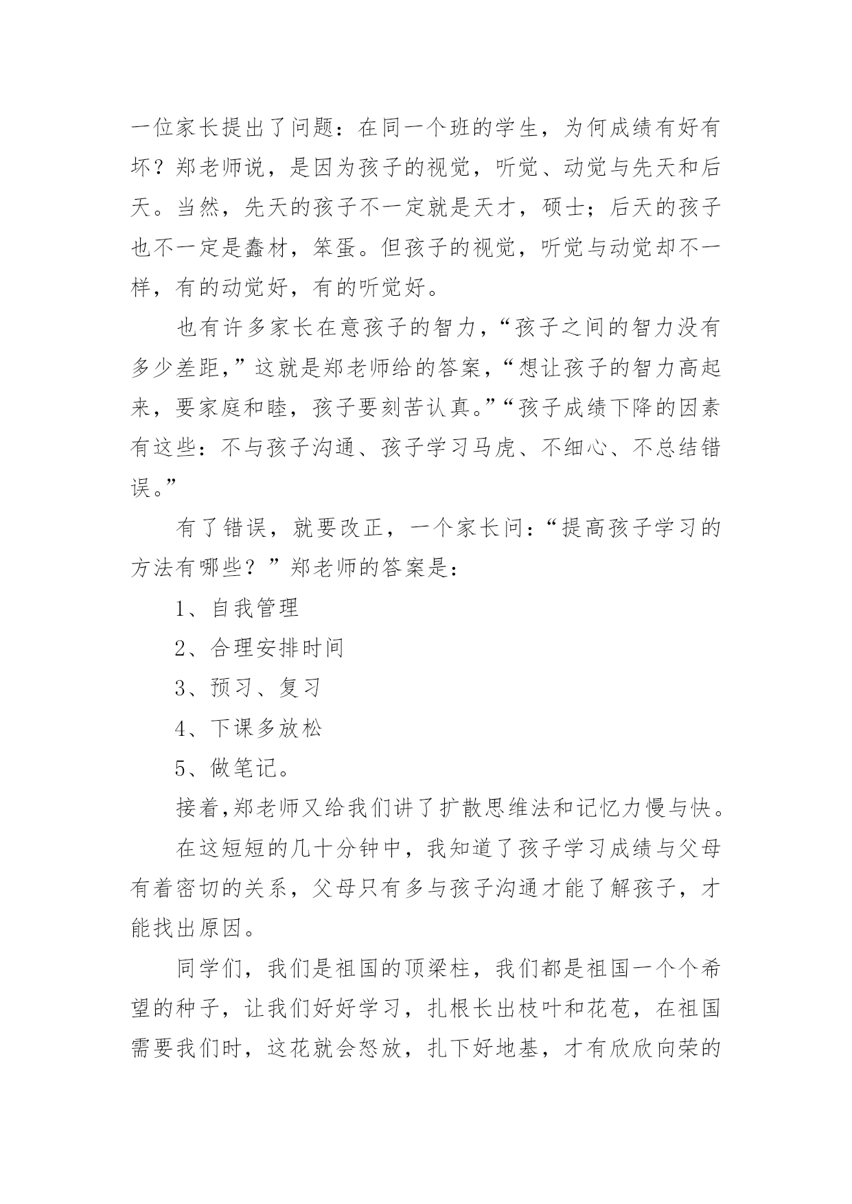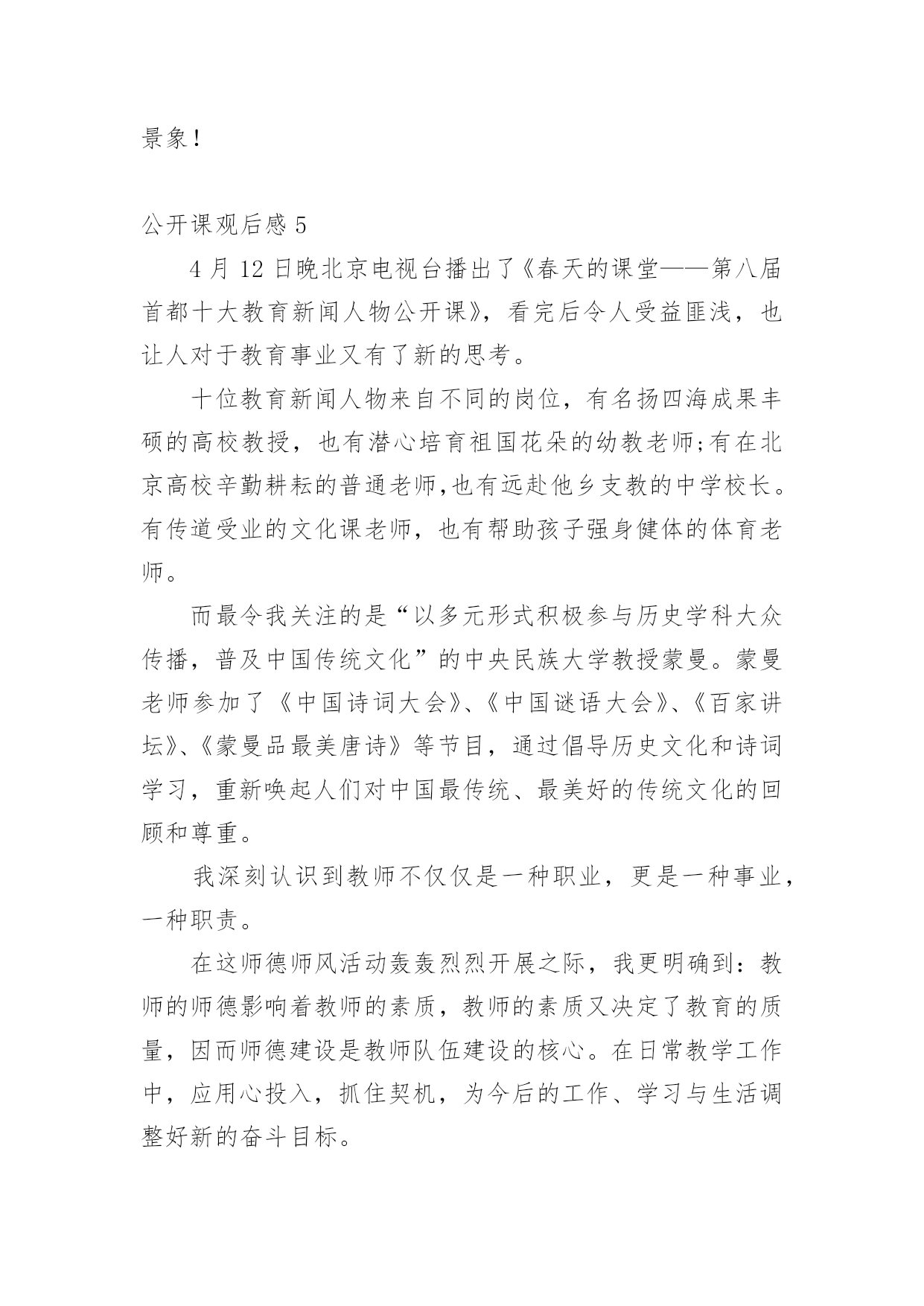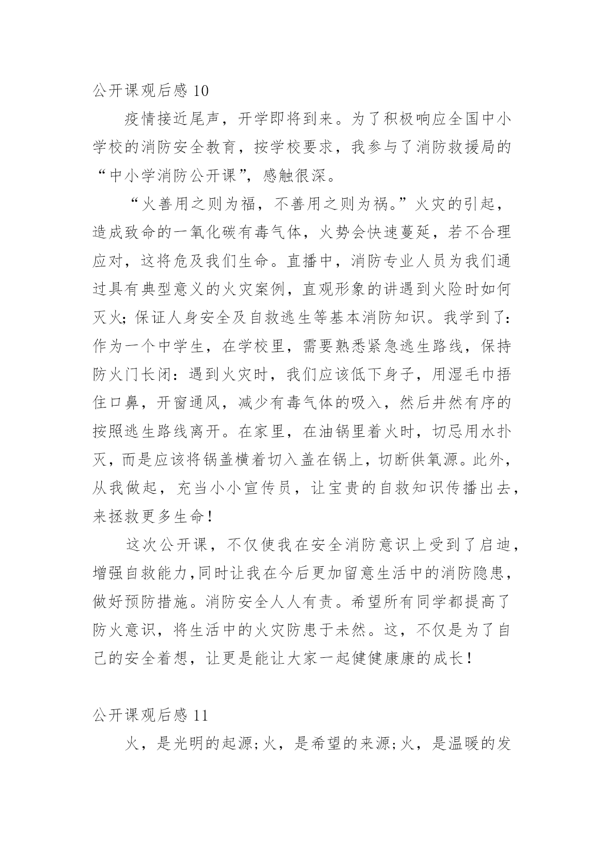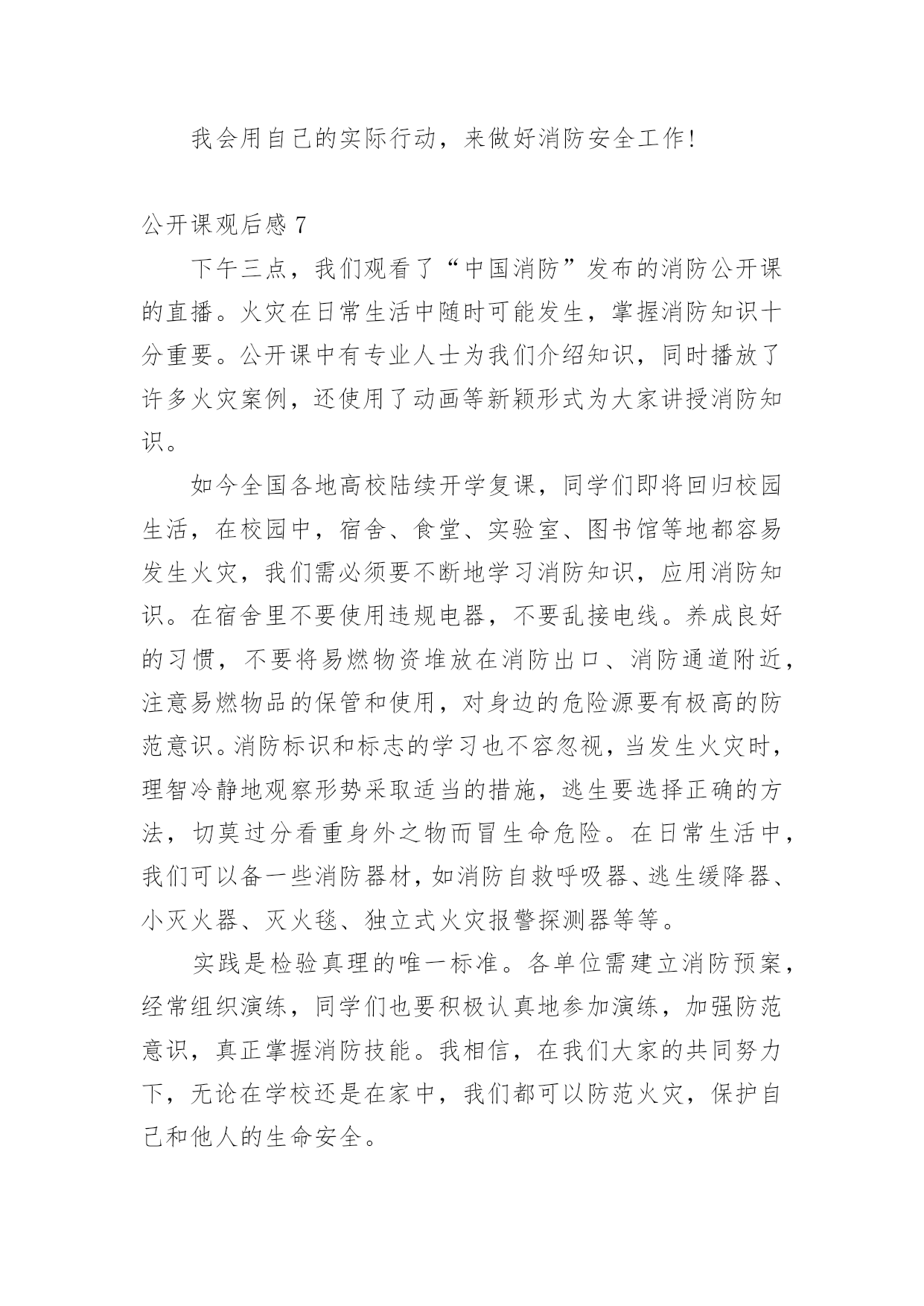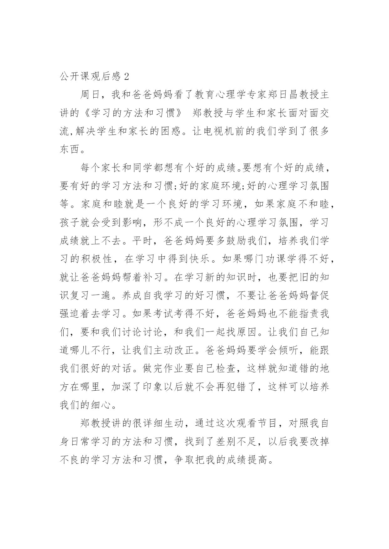 公开课观后感看完一部作品后,这次观看让你有什么领悟呢?是时候写一篇观后感好好记录一下了。那要怎么写好观后感呢?以下是小编帮大家整理的公开课观后感,欢迎阅读与收藏。公开课观后感1看完了消防安全网络公开课后,我被吓住了。原来生活中的某个细节都可能导致严重的火灾,给人带来损失与伤害。这本书里讲了火猛于虎,我觉得很对,所以从现在开始,我要减少我家里发生火灾的可能性。视频里还讲了许多有关火灾的案例;上面写的案例让我呆住了,因为有一场火灾竟是一支小小的香烟引起的,小小的香烟竟让一家三口的房间烧成了一片废墟,真让人害怕呀!当然,书上也教了我们预防和扑灭火的方法:如果是油锅起火的话就要马上盖上锅盖。从视频里还学到了许多课堂上老师没有教过的知识:火虽然可以为我们带来很多的方便,很多的轻松与很多的幸福,但在这温和的一面的背后还隐藏着一张狰狞可怕的面容,这张面容可以让我们的幸福快乐在一瞬间消失不见,就像在做梦一样。火灾真是非常可怕的,我要让火不给我们造成伤害有什么办法呢?有了,就是要利用好火,让它只帮助我们不伤害我们,让它把那“坏脾气”改一改。还要在家里装上灭火器,做好准备。只要我们预防,就不会发生太多的火灾。公开课观后感2周日,我和爸爸妈妈看了教育心理学专家郑日昌教授主讲的《学习的方法和习惯》郑教授与学生和家长面对面交流,解决学生和家长的困惑。让电视机前的我们学到了很多东西。每个家长和同学都想有个好的成绩。要想有个好的成绩,要有好的学习方法和习惯;好的家庭环境;好的心理学习氛围等。家庭和睦就是一个良好的学习环境,如果家庭不和睦,孩子就会受到影响,形不成一个良好的心理学习氛围,学习成绩就上不去。平时,爸爸妈妈要多鼓励我们,培养我们学习的积极性,在学习中得到快乐。如果哪门功课学得不好,就让爸爸妈妈帮着补习。在学习新的知识时,也要把旧的知识复习一遍。养成自我学习的好习惯,不要让爸爸妈妈督促强迫着去学习。如果考试考得不好,爸爸妈妈也不能指责我们,要和我们讨论讨论,和我们一起找原因。让我们自己知道哪儿不行,让我们主动改正。爸爸妈妈要学会倾听,能跟我们很好的对话。做完作业要自己检查,这样就知道错的地方在哪里,加深了印象以后就不会再犯错了,这样可以培养我们的细心。郑教授讲的很详细生动,通过这次观看节目,对照我自身日常学习的方法和习惯,找到了差别不足,以后我要改掉不良的学习方法和习惯,争取把我的成绩提高。公开课观后感3通过本次学习,我深深地感受到对孩子的教育是一门永远学不完的人生课。而这门课程是需要全方位重视和成长的。作为一个家长、一所学校甚至整个社会对下一代的培养都应该有一种责任心和关注度。而我们家长作为孩子的第一任老师,其一言一行更是深刻地影响着孩子,作为家长首先要以身作则,不断学习和提高自己。父母承担着对孩子实施家庭教育的主体责任,我们要用正确的思想、方法和行为来教育孩子养成好思想,好品行的习惯。教育理念跟着时代发展是一致的,都要不断前进,不断变革,作为家长有担当,有责任感,多陪伴,才能提升感情,对自己严格要求是必不可少的,日常生活中让孩子不断提升自己的动手能力,干一些力所能及的家务也必不可少的,良好的习惯养成不在一朝一夕,日积月累才能破茧成蝶。家是最小国,国是千万家,家庭是社会的细胞,是人生的第一所学校。作为家长,我们有责任不断加强学习科学的教育理念,携手家庭和社会,共同营造关爱孩子健康成长的良好氛围,用爱滋润孩子心灵,用心启迪孩子智慧,履行家庭教育的责任,做一名合格的.家长。公开课观后感4今天,雨下的哗哗地,我打开电视,找到山东公共频道,看《中国公开课》。这次,里面来了一位北京师范大学教授心理专家郑日昌。一位家长提出了问题:在同一个班的学生,为何成绩有好有坏?郑老师说,是因为孩子的视觉,听觉、动觉与先天和后天。当然,先天的孩子不一定就是天才,硕士;后天的孩子也不一定是蠢材,笨蛋。但孩子的视觉,听觉与动觉却不一样,有的动觉好,有的听觉好。也有许多家长在意孩子的智力,“孩子之间的智力没有多少差距,”这就是郑老师给的答案,“想让孩子的智力高起来,要家庭和睦,孩子要刻苦认真。”“孩子成绩下降的因素有这些:不与孩子沟通、孩子学习马虎、不细心、不总结错误。”有了错误,就要改正,一个家长问:“提高孩子学习的方法有哪些?”郑老师的答案是:1、自我管理2、合理安排时间3、预习、复习4、下课多放松5、做笔记。接着,郑老师又给我们讲了扩散思维法和记忆力慢与快。在这短短的几十分钟中,我知道了孩子学习成绩与父母有着密切的关系,父母只有多与孩子沟通才能了解孩子,才能找出原因。同学们,我们是祖国的顶梁柱,我们都是祖国一个个希望的种子,让我们好好学习,扎根长出枝叶和花苞,在祖国需要我们时,这花就会怒放,扎下好地基,才有欣欣向荣的景象!公开课观后感54月12日晚北京电视台播出了《春