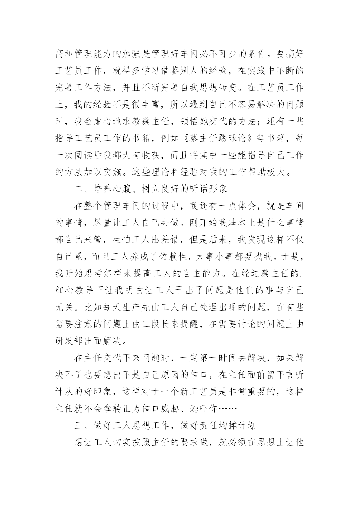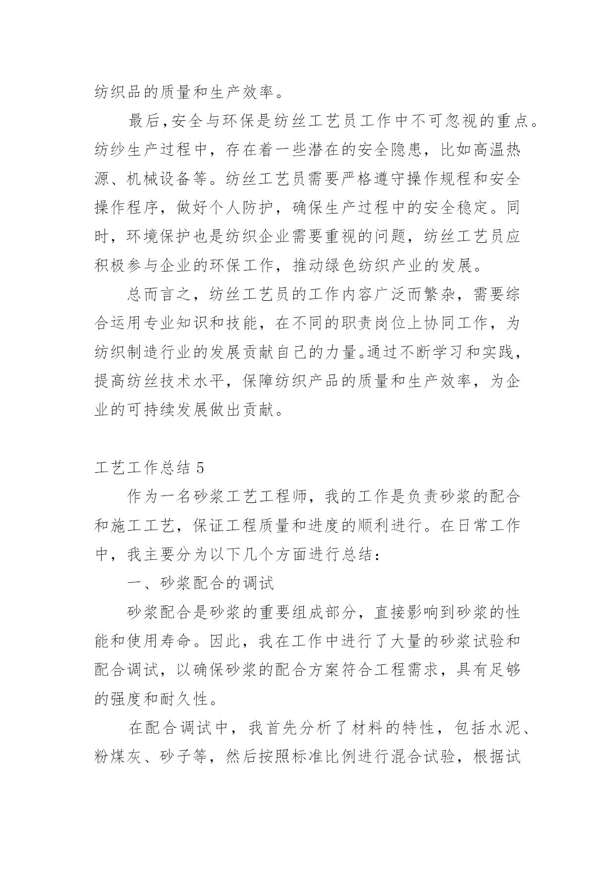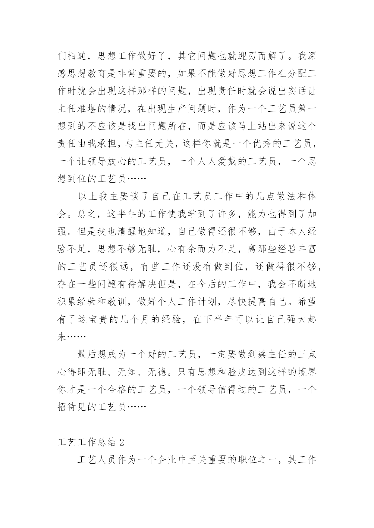 工艺工作总结总结是把一定阶段内的有关情况分析研究,做出有指导性结论的书面材料,它可以使我们更有效率,让我们来为自己写一份总结吧。那么总结应该包括什么内容呢?下面是小编帮大家整理的工艺工作总结,仅供参考,希望能够帮助到大家。工艺工作总结1经过一年的工作实践,使我深刻体会到,要当好一个工艺员的确不容易。怎样才能做一个好的工艺员、怎样才能当一个让公司和主任满意的工艺员,我是怀着这样一颗严肃负责的心来对待工艺员工作的。以下是我在这半年的个人工作总结报告:在过去的半年的时间里,我有过许多困惑,遇到过很多不明白、不知该怎样处理的问题,有过一些情绪,但是,在蔡主任的帮助下,在那份责任的推动下,我解决了各种矛盾,坚定了自己的方向。作为一名工艺员,作为主任的左膀右臂,我必须对公司负责,必须对主任负责,必须对工人负责,也必须对自己负责毕竟这是我的工作。我要尽我最大的努力,将我的工作做到最好!抱着这样的思想,我踏踏实实、认认真真地工作,虽然做得还不是最好,但我一直在努力;虽然还谈不上有什么经验,但也有一些自己的想法。一、理论联系实际,责任推给他人。工艺员是车间的组织者和领导者。工艺员自身素质的提高和管理能力的加强是管理好车间必不可少的条件。要搞好工艺员工作,就得多学习借鉴别人的经验,在实践中不断的完善工作方法,并且不断完善自我思想转变。在工艺员工作上,我的经验不是很丰富,所以遇到自己不容易解决的问题时,我会虚心地求教蔡主任,领悟她交代的方法;还有一些指导工艺员工作的书籍,例如《蔡主任踢球论》等书籍,每一次阅读后我都大有收获,而且将其中一些能指导自己工作的方法加以实施。这些理论和经验对我的工作帮助极大。二、培养心腹、树立良好的听话形象在整个管理车间的过程中,我还有一点体会,就是车间的事情,尽量让工人自己去做。刚开始我基本上是什么事情都自己来管,生怕工人出差错,但是后来,我发现这样不仅自己累,而且工人养成了依赖性,大事小事都要找我。于是,我开始思考怎样来提高工人的自主能力。在经过蔡主任的.细心教导下让我明白让工人干出了问题是他们的事与自己无关。比如每天生产先由工人自己处理出现的问题,在有些需要注意的问题上由工段长来提醒,在需要讨论的问题上由研发部出面解决。在主任交代下来问题时,一定第一时间去解决,如果解决不了也要想出不是自己原因的借口,在主任面前留下言听计从的好印象,这样对于一个新工艺员是非常重要的,这样主任就不会拿转正为借口威胁、恐吓你……三、做好工人思想工作,做好责任均摊计划想让工人切实按照主任的要求做,就必须在思想上让他们相通,思想工作做好了,其它问题也就迎刃而解了。我深感思想教育是非常重要的,如果不能做好思想工作在分配工作时就会出现这样那样的问题,出现责任时就会说出实话让主任难堪的情况,在出现生产问题时,作为一个工艺员第一想到的不应该是找出问题所在,而是应该马上站出来说这个责任由我承担,与主任无关,这样你就是一个优秀的工艺员,一个让领导放心的工艺员,一个人人爱戴的工艺员,一个思想到位的工艺员……以上我主要谈了自己在工艺员工作中的几点做法和体会。总之,这半年的工作使我学到了许多,能力也得到了加强。但是我也清醒地知道,自己做得还很不够,由于本人经验不足,思想不够无耻,心有余而力不足,离那些经验丰富的工艺员还很远,有些工作还没有做到位,还做得很不够,存在一些问题有待解决但是,在今后的工作中,我会不断地积累经验和教训,做好个人工作计划,尽快提高自己。希望有了这宝贵的几个月的经验,在下半年可以让自己强大起来……最后想成为一个好的工艺员,一定要做到蔡主任的三点心得即无耻、无知、无德。只有思想和脸皮达到这样的境界你才是一个合格的工艺员,一个领导信得过的工艺员,一个招待见的工艺员……工艺工作总结2工艺人员作为一个企业中至关重要的职位之一,其工作的质量和效率直接影响着企业的生产效益和产品质量。回顾过去一年的工作,我深刻反思了自己的工作表现,发现了一些不足之处。下面是我对自己工作不足的总结:首先,我发现自己在技术能力方面的不足。作为一个工艺人员,应该具备扎实的专业知识和技能。然而,我发现自己在某些方面的技术知识还有待加强,对新工艺和新设备的了解不够深入。这使得我的工作效率受到了一定的限制,有时候需要花费更多的时间来解决问题。在新的一年中,我将加强学习,提高自己的技术能力,不断提升自己在工艺方面的水平。其次,我发现自己在沟通和协调能力方面有所欠缺。作为工艺人员,与其他部门的合作和沟通是非常重要的,需要良好的协调能力和沟通技巧。然而,在过去的一年中,我意识到自己在这方面做得还不够好。有时候我在与其他部门的沟通中表达不清楚,导致了一些误解和延误。在新的一年中,我将加强与其他部门的沟通,提高自己的协调能力,以更好地完成工作任务。此外,我还发现自己在问题解决能力方面存在
