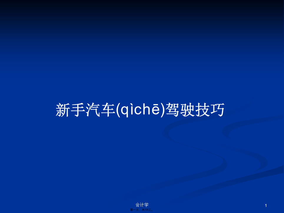 会计学目录6.1汽车驾驶考试6.1.1学车流程学车人应先到驾校、车管所或交通支(大)队的对外办公窗口领取《机动车驾驶证申请表》、《驾驶员健康检查登记表》。在指定地点检查身体合格后,携带身份证明、填写好的《驾驶员健康检查登记表》、照片(白底彩照)到驾校办理学车报名。经车管所审核通过后,可以进行(jìnxíng)驾驶员学习和考试。驾驶员考试及发证由公安(gōngān)交警部门负责,考试科目分为:道路交通安全法律、法规和相关知识考试科目(简称“科目一”)、场地驾驶技能考试科目(简称“科目二”)、道路驾驶技能考试科目(简称“科目三”)。考试顺序按照科目一、科目二、科目三依次进行,前一科目考试合格后,方准参加后一科目的考试。每个科目考试一次,可以补考一次。补考仍不合格的,本科目考试终止。初次申请机动车驾驶证或者申请增加准驾车型的,科目(kēmù)一考试合格后,车辆管理所应当在三日内核发驾驶技能准考证明。驾驶技能准考证明的有效期为二年。申请人应当在有效期内完成科目(kēmù)二和科目(kēmù)三考试。6.1.2道路交通安全法律、法规和相关知识考试科目考核道路交通安全法律、法规和相关知识考试一般(yībān)都在计算机上进行,试题类型为选择题。考试满分为100分,成绩达到90分(含)的为合格。1.考试内容考试内容包括:在规定场地内驾驶机动车完成考试项目的情况;对机动车驾驶技能掌握的情况;对机动车空间位置判断的能力。2.考试项目基本考试项目有:桩考、坡道定点停车和起步、侧方停车、通过(tōngguò)单边桥、曲线行驶、直角转弯、限速通过(tōngguò)限宽门、通过(tōngguò)连续障碍、百米加减挡、起伏路行驶3.各项目的操作要求(1)桩考针对不同车型,桩考内容不同(2)坡道定点停车和起步(qǐbù)目的是考核机动车驾驶人在坡道上驾驶车辆的技能(3)侧方停车目的是考核机动车驾驶人将车辆正确停入道路右侧车位(库)的技能。(4)通过单边桥目的是考核机动车驾驶人准确运用转向、正确判断车轮直线行驶轨迹(guǐjì)、操纵车辆不平行运行的能力。(5)曲线行驶目的是考核机动车驾驶人操纵转向、控制车辆曲线行驶的能力。(6)直角转弯目的是考核机动车驾驶人在急弯路段驾驶车辆时,正确操纵转向、准确判断车辆内、外轮差的能力。(7)限速通过限宽门目的是考核机动车驾驶人在一定车速下对车身位置的正确判断能力。(8)通过连续障碍目的是考核机动车驾驶人驾驶车辆通过连续障碍时,对车轮行驶轨迹和内、外轮差的判断能力。(9)百米加减(jiājiǎn)挡目的是考核机动车驾驶人操纵车辆挡位的熟练程度。(10)起伏路驾驶目的是考核机动车驾驶人驾驶车辆平顺通过起伏路面的能力。6.1.4道路驾驶技能考试科目考核1.考试内容包括:在道路上驾驶机动车完成考试项目的情况;遵守交通法律、法规的情况;综合控制机动车的能力;正确使用灯光(dēngguāng)、喇叭、安全带等装置的情况;正确观察、判断道路交通情况的能力;安全驾驶行为、文明驾驶意识。2.考试项目包括:上车准备、起步、直线行驶、变更车道、通过路口、靠边(kàobiān)停车、通过人行横道线、通过学校区域、通过公共汽车站、会车、超车、掉头、夜间行驶。满分为100分,报考大型客车、牵引车、城市公交车、中型客车、大型货车准驾车型,成绩达到90分的,报考其他准驾车型成绩达到80分的,考试合格。6.1.5驾驶证驾驶证有效期为六年,机动车驾驶人应当于机动车驾驶证有效期满(qīmǎn)前九十日内,向机动车驾驶证核发地车辆管理所申请换证;超过机动车驾驶证有效期一年以上未换证的,注销机动车驾驶证。考试合格后,由公安部门颁发统一的机动车驾驶证。依据2007年4月1日起施行的《机动车驾驶证申领和使用规定》(公安部第91号令),机动车驾驶证的准予驾驶车型和代号如下表所示。/6.2汽车节油驾驶无论从经济效益还是环保角度考虑,都应提倡节省燃油。在驾驶车辆的过程中主要应注意以下几个方面:6.2.1起步与停车冷车起动时先热车。若停车等候超过1分钟的,应先关掉发动机6.2.2合理(hélǐ)控制车速汽车运行在经济车速时是最省油的,车速过高或过低对节油都不利。6.2.3合理选用挡位汽车在运行中,挡位的选择与换挡动作对燃油消耗的影响也很大。在起步时,应根据载重量和道路情况合理选用挡位。6.2.4确保安全合理滑行“滑行”是指车辆靠惯性力行驶一段距离。在滑行中发动机怠速运行,因此(yīncǐ)耗油量小。在坡度不大,安全有保证的条件下,可以利用下坡道作适当滑行,这样也可以节约油料。6.3特殊道路和气候条件下的驾驶6.3.1城市(chéngshì)道路驾驶城市