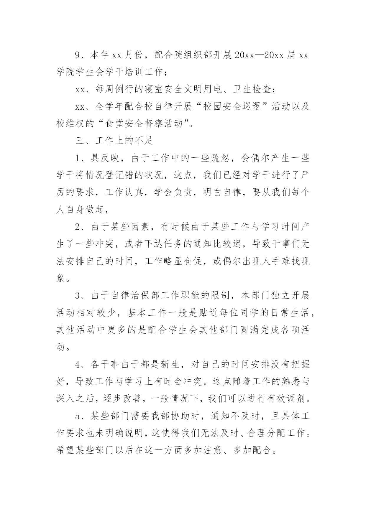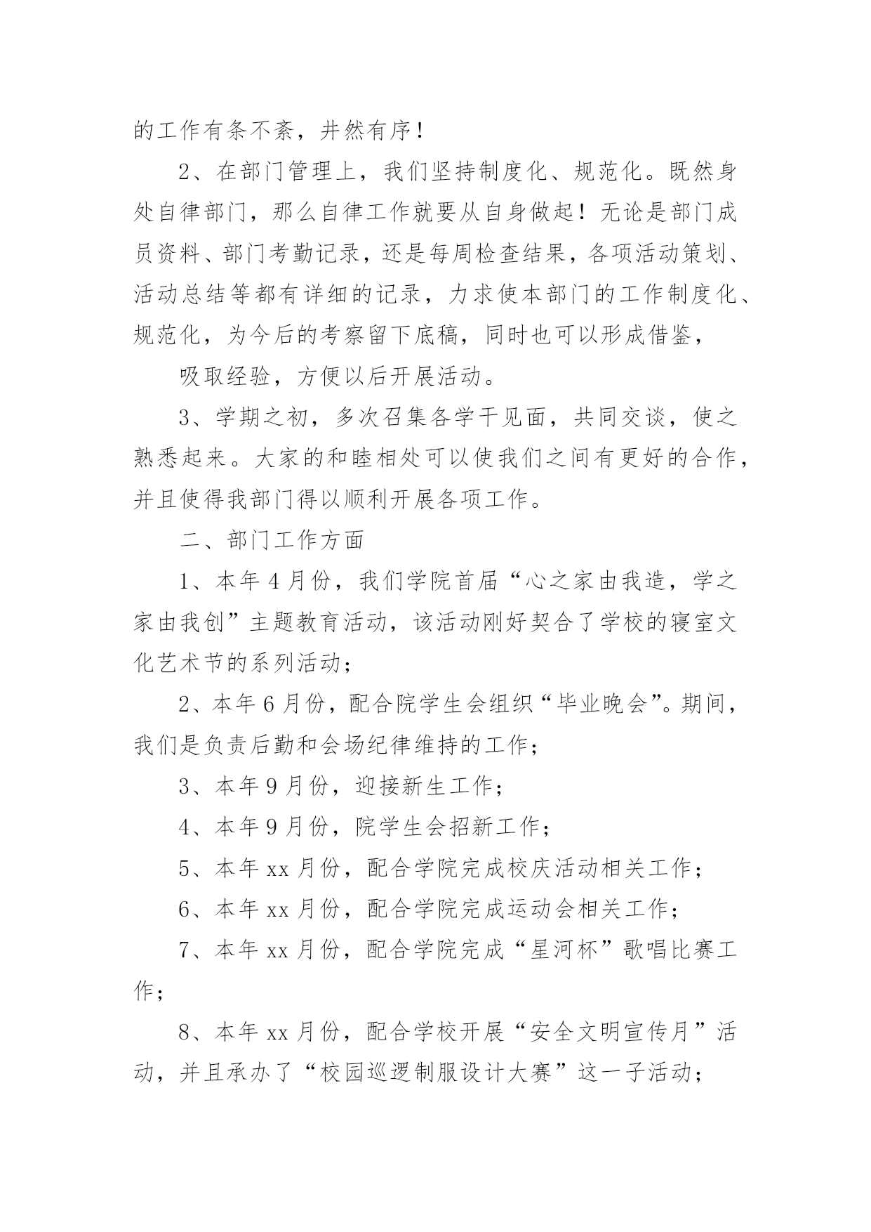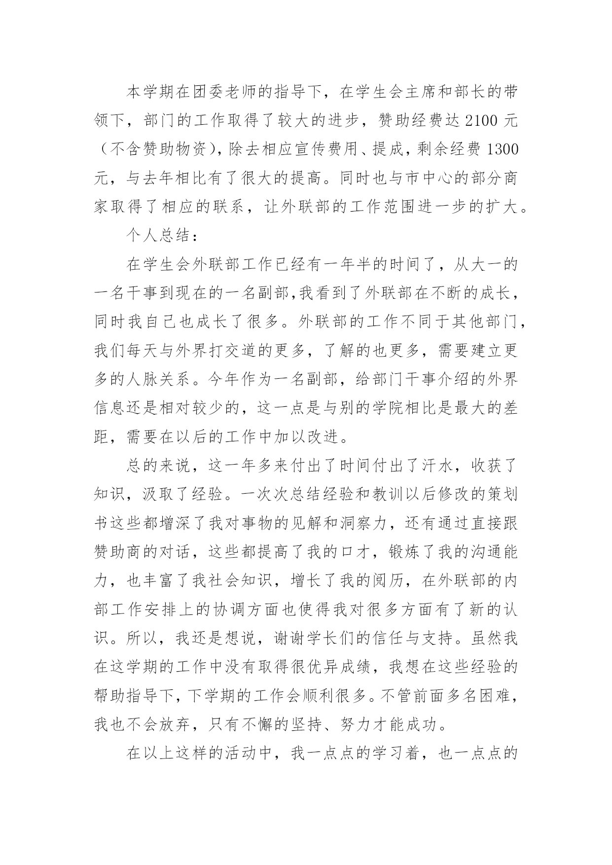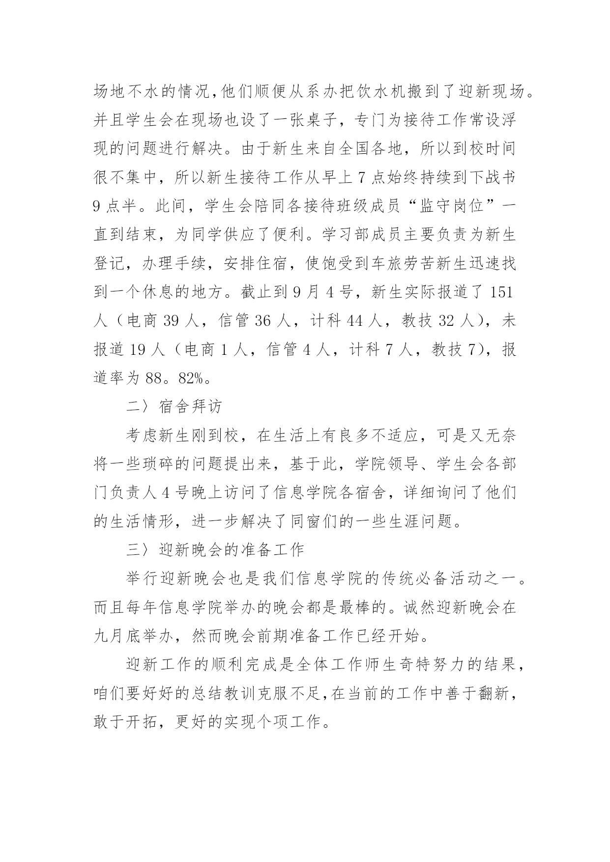 学生会招工作报告在经济发展迅速的今天,我们使用报告的情况越来越多,报告根据用途的不同也有着不同的类型。那么你真正懂得怎么写好报告吗?下面是小编收集整理的学生会招工作报告,欢迎阅读,希望大家能够喜欢。学生会招工作报告1一、坚持一个中心,两个基本点坚持以为学院活动寻找赞助商筹措经费为中心,搞好部门内部精神文明建设,完善部门例会、考核、培训制度。部门本学期坚持每月召开最少两次的工作会议,总结新干事在近来工作中遇到的问题,对干事进行工作技能、社交礼仪方面的培训,同时鼓励干事参与学院组织的每次活动。实施量化考核制度,对每次部门例会、学院活动不能及时到场参与又不请假的干事,记录在案,作为年终评比的依据。对有突出贡献的干事,在例会上给予相应的表扬。实行部门淘汰制,对于无任何贡献的干事,让其自动退出,该制度的实施对其他干事来说也是一种很好的鞭策手段,更能激励他们进步。在学院活动中,积极外出筹措经费,协调配合其他部门完成学院的每次活动,没有发生过任何因为我部门的工作而出现的错误。二、成绩有突出,工作有进展本学期在团委老师的指导下,在学生会主席和部长的带领下,部门的工作取得了较大的进步,赞助经费达2100元(不含赞助物资),除去相应宣传费用、提成,剩余经费1300元,与去年相比有了很大的提高。同时也与市中心的部分商家取得了相应的联系,让外联部的工作范围进一步的扩大。个人总结:在学生会外联部工作已经有一年半的时间了,从大一的一名干事到现在的一名副部,我看到了外联部在不断的成长,同时我自己也成长了很多。外联部的工作不同于其他部门,我们每天与外界打交道的更多,了解的也更多,需要建立更多的人脉关系。今年作为一名副部,给部门干事介绍的外界信息还是相对较少的,这一点是与别的学院相比是最大的差距,需要在以后的工作中加以改进。总的来说,这一年多来付出了时间付出了汗水,收获了知识,汲取了经验。一次次总结经验和教训以后修改的策划书这些都增深了我对事物的见解和洞察力,还有通过直接跟赞助商的对话,这些都提高了我的口才,锻炼了我的沟通能力,也丰富了我社会知识,增长了我的阅历,在外联部的内部工作安排上的协调方面也使得我对很多方面有了新的认识。所以,我还是想说,谢谢学长们的信任与支持。虽然我在这学期的工作中没有取得很优异成绩,我想在这些经验的帮助指导下,下学期的工作会顺利很多。不管前面多名困难,我也不会放弃,只有不懈的坚持、努力才能成功。在以上这样的活动中,我一点点的学习着,也一点点的进步着,虽然处事的经验还不是那么的丰富,考虑事情的方面也不是那么的周全,但我相信随着时间的积累和不断的学习,对于今后的工作我肯定会更加的充满信心。我也会怀着积极向上的良好态度和精神一直努力着。学生会招工作报告2各位代表:大家好。我是xx学院自律治保主任xxx,来自09通信工程一班,自20xx年四月接手自律工作以来,已经工作半年多了,本学期在院领导和老师的带领与指导下,在学生会全体同学的共同努力下,我们自律治保部圆满的完成了本学期的工作,切实做到了以务实的工作为广大同学服务,充分发挥学生会桥梁纽带作用,完成了一切关于所有同学切身利益的工作,在开展各项工作的过程中,密切配合分院和团委、学生会各个时期的工作,有效地开展了各种活动,先进行如下诉职:一、部门管理方面1、本学期自律治保部设部长一名,副部长二名,另有干事六名。在部门管理中,由部长统筹管理本部门,副部长分管各个学干工作,辅助部长完成各项工作,六名学干中分别为四男二女,分别完成每周特定的查勤工作。部长与副部长在完成一半工作的同时,也会注意观察每名学干的特长之处,发挥每名学干的优点,可以有效的提高工作效率,大家各司其职、齐心协力协助部门开展活动。明确的分工使我部的工作有条不紊,井然有序!2、在部门管理上,我们坚持制度化、规范化。既然身处自律部门,那么自律工作就要从自身做起!无论是部门成员资料、部门考勤记录,还是每周检查结果,各项活动策划、活动总结等都有详细的记录,力求使本部门的工作制度化、规范化,为今后的考察留下底稿,同时也可以形成借鉴,吸取经验,方便以后开展活动。3、学期之初,多次召集各学干见面,共同交谈,使之熟悉起来。大家的和睦相处可以使我们之间有更好的合作,并且使得我部门得以顺利开展各项工作。二、部门工作方面1、本年4月份,我们学院首届“心之家由我造,学之家由我创”主题教育活动,该活动刚好契合了学校的寝室文化艺术节的系列活动;2、本年6月份,配合院学生会组织“毕业晚会”。期间,我们是负责后勤和会场纪律维持的工作;3、本年9月份,迎接新生工作;4、本年9月份,院学生会招新工作;5、本年xx月份,配合学院完成校庆活动相关工作;6、本年xx月份,配合学院完成运动会相关工作;7、本年xx月份,配合学院完成“星河杯”歌唱比赛工作;8、本年xx月份,